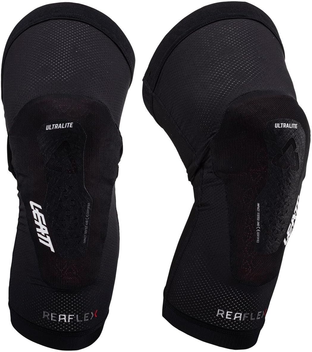 ULTRA-LITE AND ULTRA SLIM IMPACT GEL PROTECTOREngineered for maximum pedal efficiency and comfort. Minimalistic, comfortable, ergonomic fit and uncompromised CE certified impact protection. The ultra-lightweight construction and silicone grip panels made it possible to delete the thigh strap and still keep that famous Leatt non-slip fit. The extended leg sock offers great support high on the thigh, relieving pressure from the calf. This knee guard meets all our design criteria with premium mesh and ventilated materials. The ReaFlex impact gel pad fits into a mesh pocket with an abrasion resistant patch over the knee. Once you put these on, you will see what we mean!Has a Leatt protection score of 10 out 25.