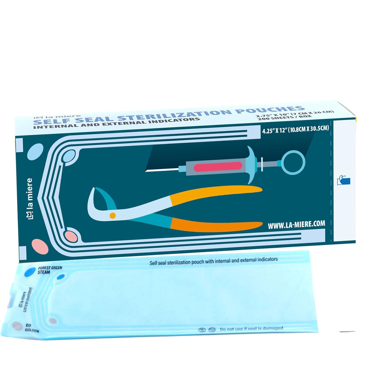 LA MIERE 2000P 3.5"X 5.25" Self Sterilization Pouches for Dental Offices, Autoclave Pouch, 10 Boxes (3.25"x 5")