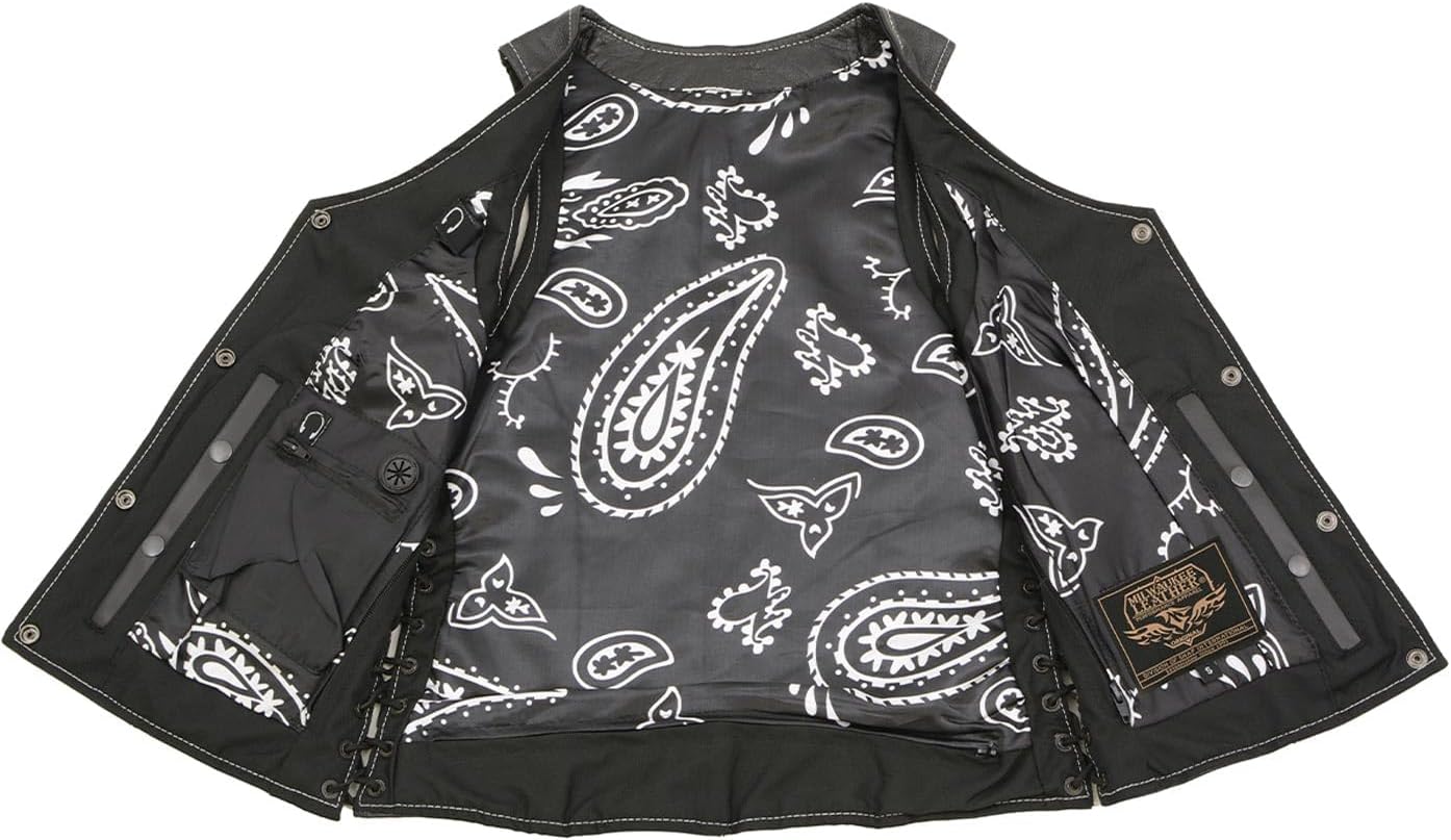 Lkl4711 Women's Black Leather Motorcycle Vest