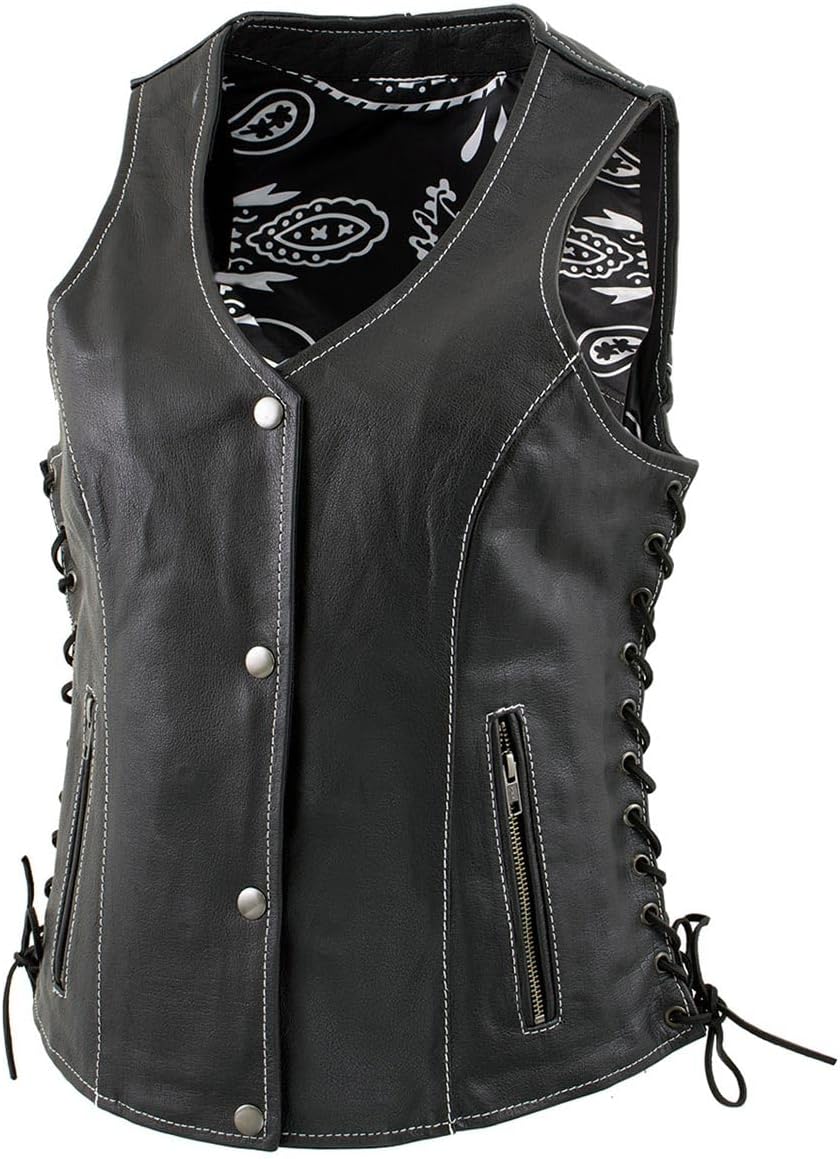| Style | Lkl4711 Women's Black Leather Motorcycle Vest |