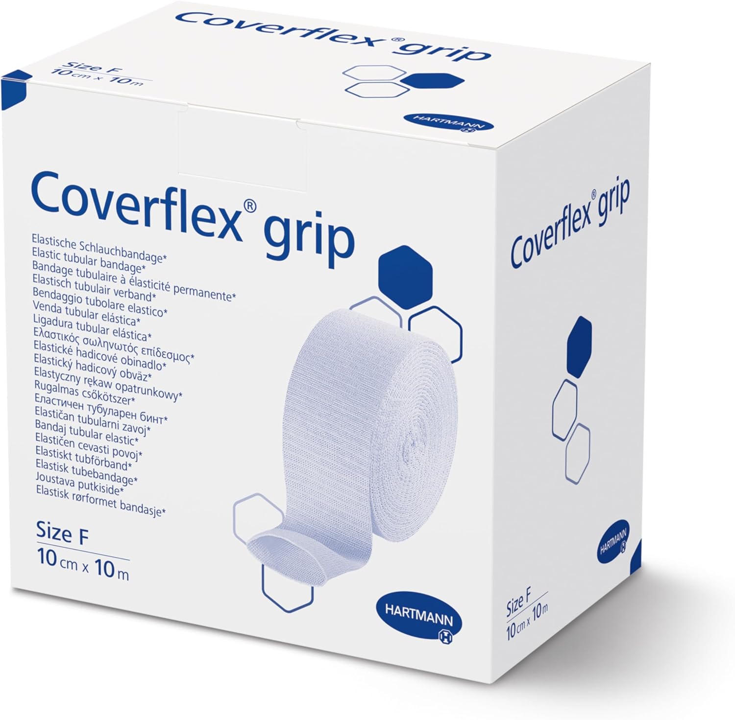 The Coverflex Grip Tubular Compression Bandage, Size F - REF: 931070 provides reliable compression support in a soft and breathable design. Measuring 10 cm in width and 10 m in length (≈ 4 in × 11 yd), Size F is well-suited for knees and medium-sized limbs, offering a secure fit that delivers gentle, even pressure. The tubular construction eliminates the need for clips or tape, ensuring quick application and consistent support. Washable and reusable, this bandage is a cost-effective choice for healthcare professionals and home care alike. Whether used for swelling control, soft tissue support, or dressing retention, Coverflex Grip delivers dependable comfort and performance.