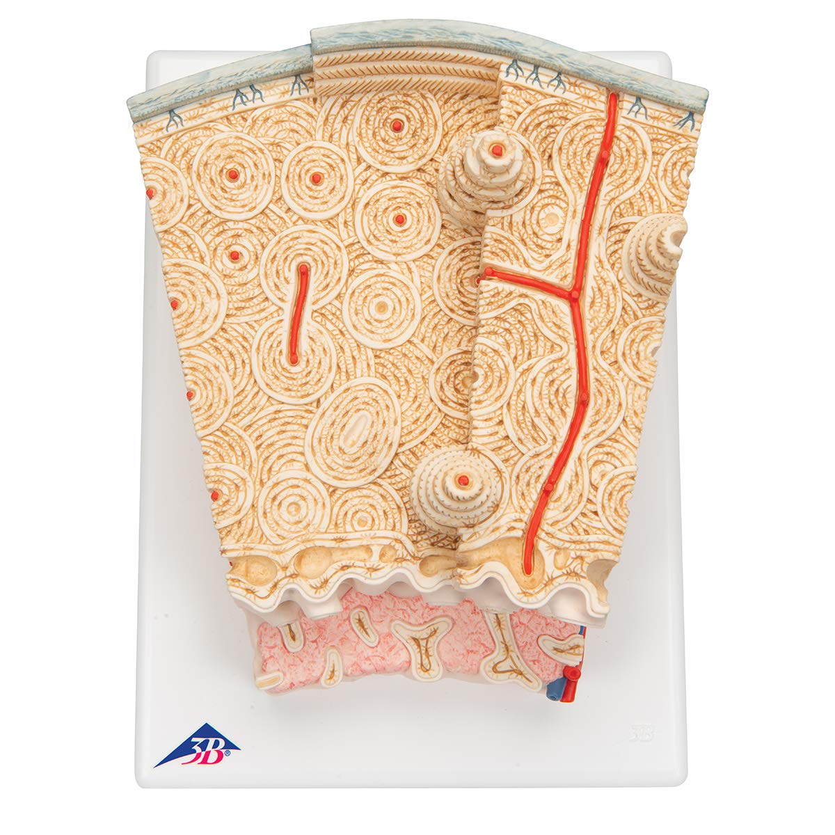 This extremely detailed bone structure model depicts a three-dimensional section of a lamellar bone, showing a typical structure of a tubular bone enlarged 80 times. The bone structure model shows various planes in cross and longitudinal section through all levels of the bone, as well as a 2-plane section through the inner structure of the bone marrow. The typical elements of a lamellar bone are easily identified in this bone structure model and help to understand its structure and function with the characteristic osteons, also referred to as haversian systems. This bone structure model allows a graphic illustration of the interplay of the individual components, such as spongy and compact substance, endosteum, cortical substance, osteocytes, volkmann and haversian c s. 3B microanatomy bone structure supplied on base. There is no better way to teach and learn about the structure of the human bone then with this great microanatomy bone model. NEW and exclusively with original 3B Scientific anatomy models - now enhanced with 3B Smart Anatomy. Your advantages with all 3B Smart Anatomy models: Free warranty extension from 3 to 5 years, free access to 3B Smart Anatomy courses in the award-winning Complete Anatomy app, this includes 11 3B Smart Anatomy courses with 23 lectures and 117 different views of interactive virtual models, plus 39 quizzes. To unlock these benefits, simply scan the label and register your 3B Smart Anatomy model online. All 3B Smart Anatomy features are completely free of charge. "Virtual meets Reality" developed by 3B Scientific makes learning human anatomy even more effective across all media.
