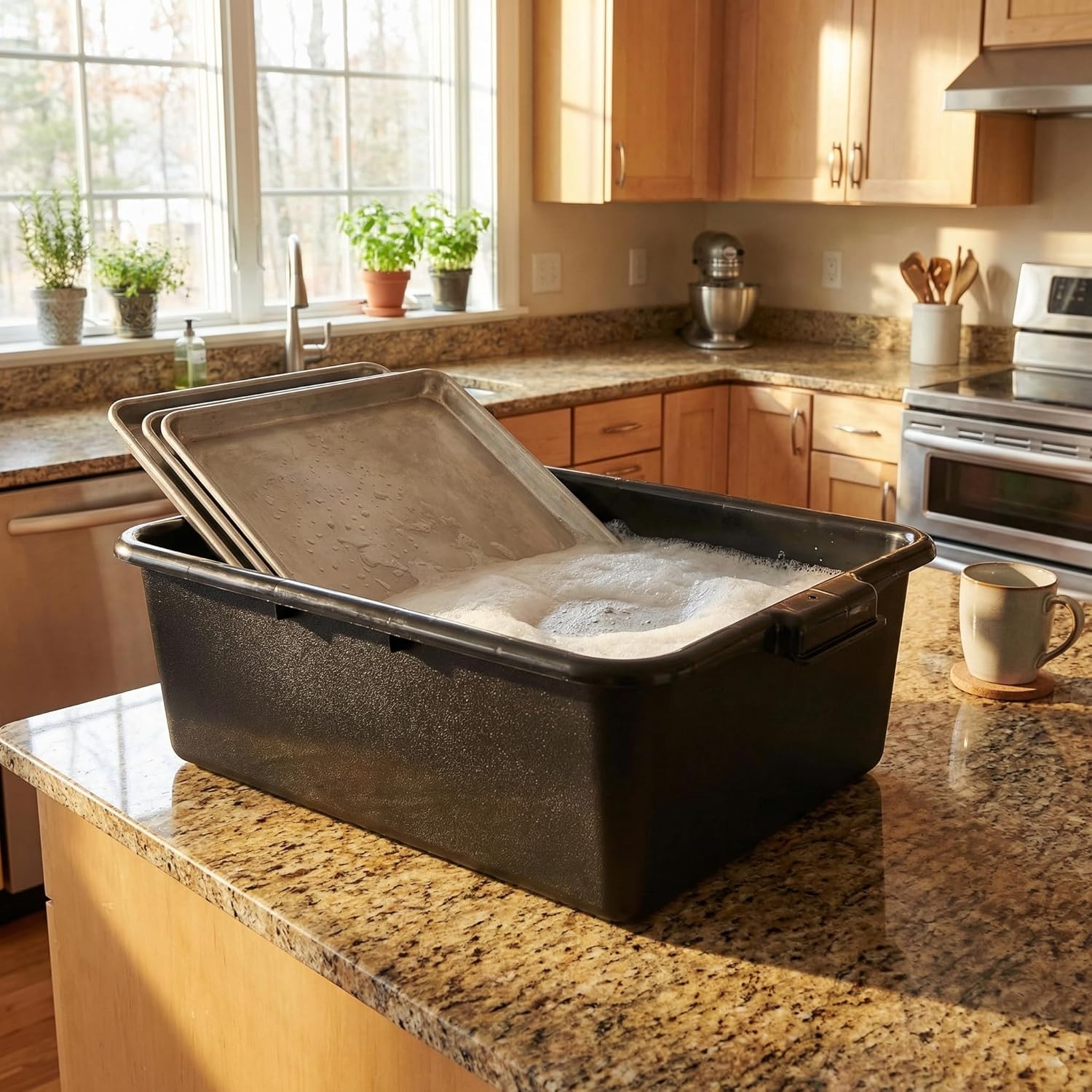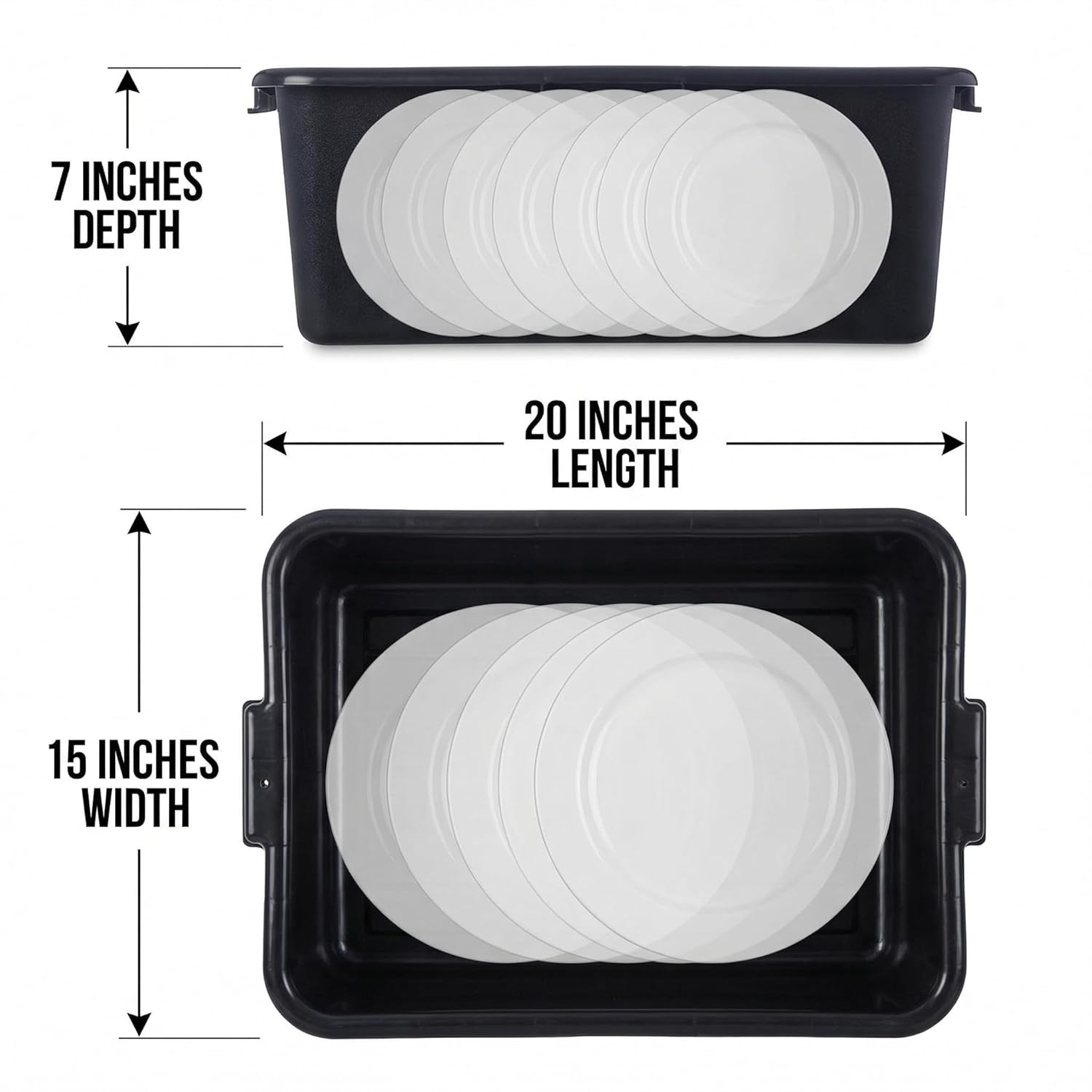 Bus tables more efficiently with the Carlisle 4401103 bus / utility box. The reinforced rims minimize bending, bowing and breaking protecting your tableware reducing labor costs by allowing more to be carried in one trip. The molded in Comfort Curve handles ensure a comfortable grip for secure transporting. Integrated stacking lugs allow for efficient, jam-free storage when not in use. Unique contour lid design (sold separately) allows for easy box-on-box stacking. This box is compatible with the Carlisle 44012 universal bus box lid. The smooth interior with rounded corners prevents trapped food and debris from accumulating making for easy cleaning. The box is safe for use in commercial dishwashers. The 4401103 measures 15 x 20 x 7 inches (L x W x H). It is made in the USA and recyclable.