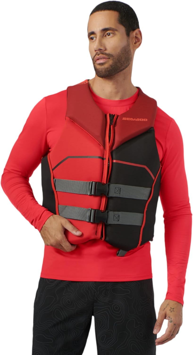 Say hello to your independence from uncomfortable, cumbersome PFDs with the Sea-Doo Freedom PFD Life Jacket. Eco-conscious ecoprene material is made without rubber and designed to dry quickly without extra weight from the PVC and expandable Polyethylene insulation. Give your back an extra boost thanks to the extra foam padding in the lumbar comfort zone, which minimizes lower back pressure and adds support while sitting. Other key features include a quick-drying, water-draining mesh panel, YKK front zipper, large-cut armholes for maximum range of motion, and stretch side panels. Grab this Coast Guard-approved PFD for your next water adventure.