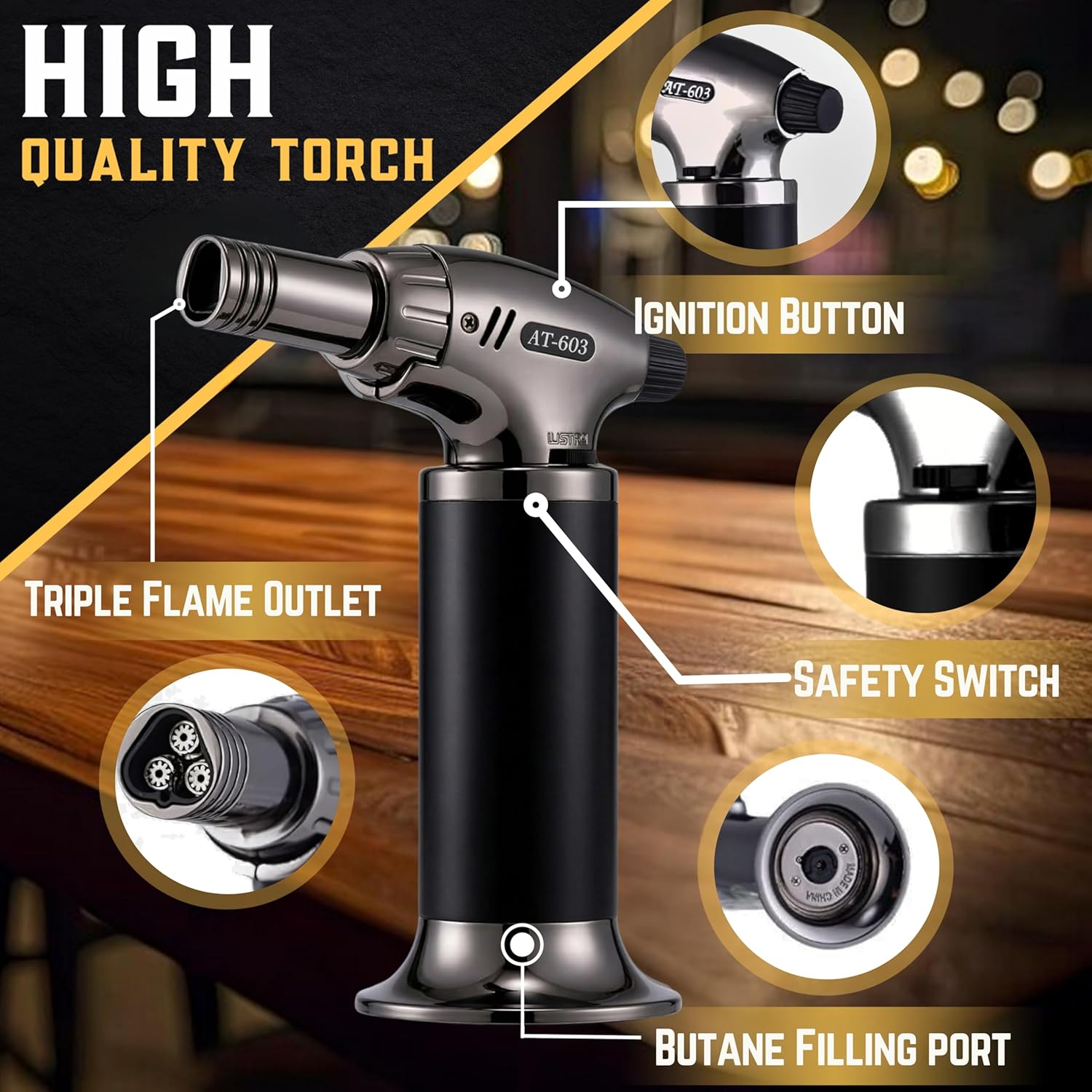 • 【 CRAFTED FOR QUALITY 】We build every piece to last—because great drinks deserve tools that keep up. From the smoker top to the torch, each component is made with durable materials meant for regular use, whether you're smoking whiskey, old fashioneds, or experimenting with new creations. Backed by a 3-year warranty, it's reliability you can count on, pour after pour.
