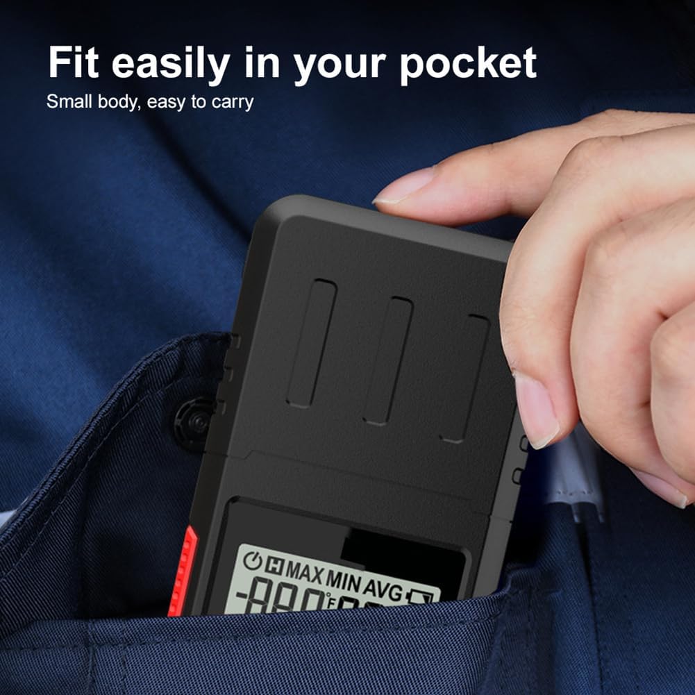 Specifications:Material: ABSSize: 142*58*26mm/5.6''*2.3''*1''Weight:114g/0.25lbSound Range: 30—130dBAccuracy: ±1.5dBFrequency response range: 30Hz — 8KHzFrequency weighting: Fast/slow time weightingTime weight: Fast 125ms, Slow 1secTemperature range:-20°C-60°C(-4°F-140°F)Humidity range:0-100%Auto power off:10 minutesTemperature unit:°C/°FData hold function ,Max/Min functionPackage contents:1*Sound level meter1*User Manual1 * Storage Bag3* AAA BatteryFeature:Engineered for accurate noise measurement across a wide range of applications. With a measurement range of 30 to 130 dB, the sound level meter is perfect for monitoring environmental noise, identifying potential hazards in workspaces, or ensuring compliance with sound regulations.Accuracy of ±1.5 dB, allowing for reliable assessments whether you are an acoustic engineer,safety officer, or simply a concerned citizen wanting to measure noise levels in your environment. Additionally, it features temperature measurement capabilities ranging from -20℃ to 60℃ (-4℉ to 140℉) and humidity measurement from 0 to 100%, making it an essential tool for comprehensive environmental analysis.Compact and easy to operate, the digital sound level meter is equipped with clear LCD display for effortless reading of measurements. Its robust design ensures durability, making it the ideal choice for both professional and personal use.Take control of your sound environment with our Digital Sound Level Meter and ensure you stay informed. Perfect for various applications, it remains a vital instrument for anyone needing accurate noise assessments.
