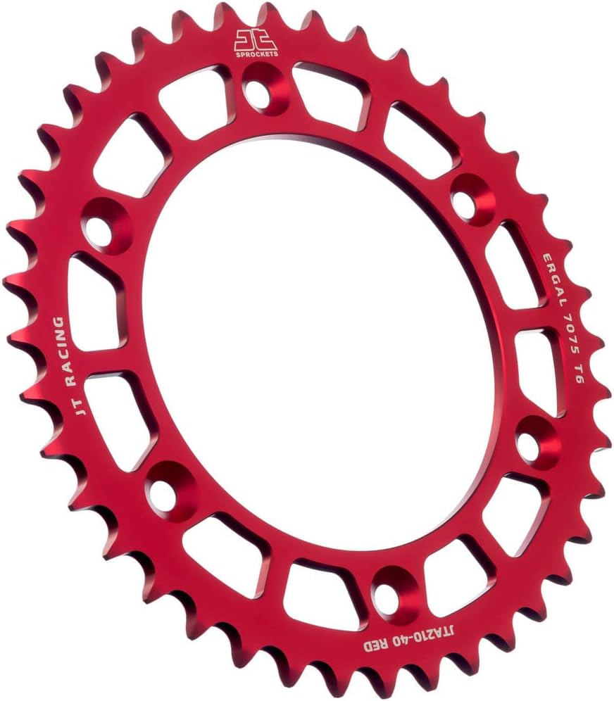 JT Sprockets is proud to introduce the new Racelite range of anodized 7075-T6 aluminum competition sprockets. These new JT Racing sprockets are designed and engineered to withstand the extreme pro-race conditions, providing maximum strength and durability at minimum weight. Precision CNC machined to JT's uncompromising standards from certified 7075-T6 Ergal aviation grade aluminum alloy. The RaceLite range of competition sprockets features a full off road range, and also includes fitments for road sport bikes with a full selection of gearing options available. Available in a hard wearing anodized black, orange, red, or blue finish to compliment the color scheme on all the major manufacturers' motocross and enduro bikes, and for the most popular Supersport and Superbike road race machines.