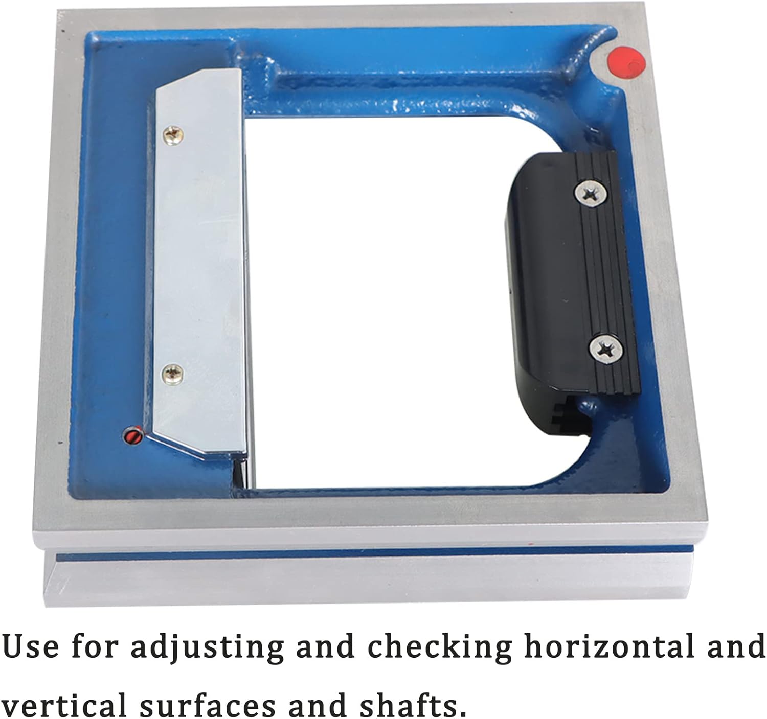 6 X 1-1/2 X 6 Inch Accurate Frame Level 4901-0077 Note:The temperature change will cause errors in the measurement, and the inspection or use must be isolated from the heat source and wind source.If the humidity of the environment is different from that of the storage environment, it should be stable in the environment for 3 hours before use.Readings can be taken after the bubble is completely stationary during measurement.After use, the level's measuring surface must be cleaned, treated with corrosion inhibitor, and stored in a dry place.Package Including:1 Pack 6" X 1-1/2" X 6" Precision Frame Level.