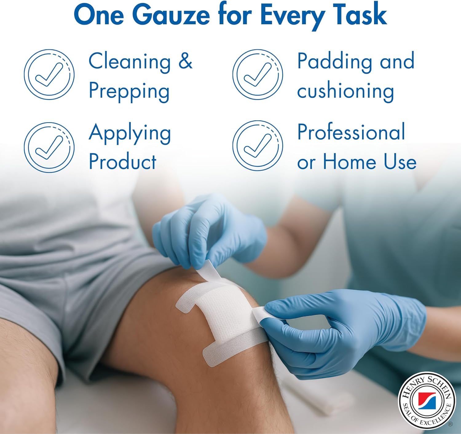 The Essentials Healthcare Products Gauze are a versatile, general-purpose sponge. The General Purpose Non-Woven Sponges are 4-ply, non-sterile, and for single-use. Highly absorbent compared to standard gauze products, this gauze allows for effective application and cleaning with little to no linting. Mostly used for wound dressing, prepping, scrubbing and general-purpose cleaning. The 4" x 4" sponge are gentle on the skin and allow patients and users to experience optimal comfort while using Essentials Gauze. Easily travel with this gauze on-the-go, store in your medicine cabinet and first aid kits, or buy to use in medical facilities, home health care, hospitals, and dental offices. The Essentials Gauze have many uses outside of medical and dental offices. Additional uses for the Essentials sponges are as follows: ointment application, wound dressing, wound cleaning, applying cleanser to skin, makeup removal, exfoliating, esthetic wipes, general purpose cleaning, and more. Less linting. Non-Sterile. 4-ply. Single Use.