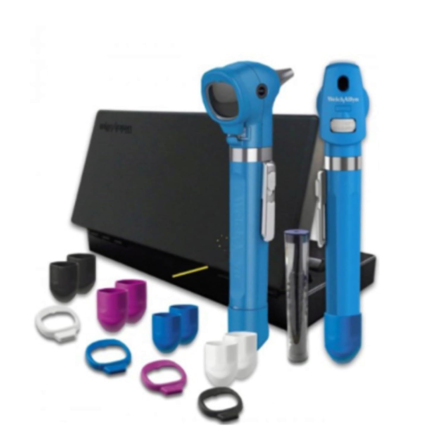Product Description Surecolor LED 2.5 V pocket Plus diagnostic set with Ophthalmoscope, fiber-optic Otoscope, two AA-battery handles, hard storage case, accessory bumper Kit (#106081), disposable and reusable ear specula (#21103-u); onyx; 4 alkaline AA batteries. Manufacturer Contact Information 1 (800) 535-6663