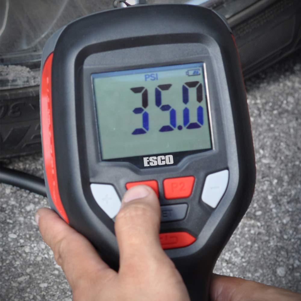 The ESCO Automatic Handheld Tire Inflator (Model 10963) is a truly portable automatic inflator/deflator. Unit is powered by a rechargeable lithium-Ion battery, lasting up to an impressive 15 hours of continuous use. Simply set the required tire pressure, connect the chuck to the tire valve and the built-in auto start inflates or deflates the tire to the specified pressure. Unit is housed in a tough ABS case and has a 5 ft. air hose. Inflates up to 174 psi at an astonishing 88 cfm | 2,500 L/min @ 182 psi. The inflator also has two programmable pre-set buttons for setting the common pressures quickly and easily. All units are tested and calibrated and include a calibration certificate.