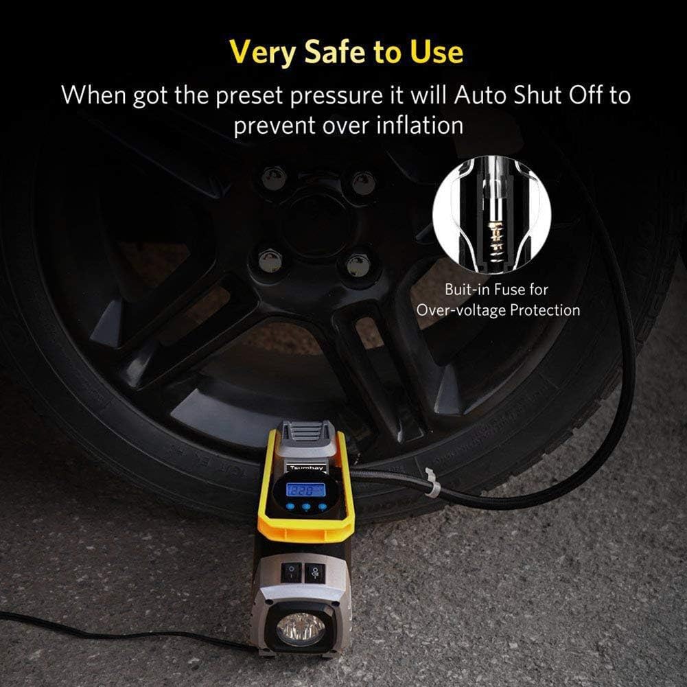 Specification:Type: Car Tire InflatorMaterial: ABSQuantity: 1pcItem Color: Yellow + blackPower Input: DC 12VFull Load Current: 10APower: 120WMaximum Pressure: 150psiFlow: 35L/minPressure Gauge Display: PSI, BAR, KPA, KGF/CM2Continuous Working Time: 8minsWorking Temperatures: 20-60 °CPower Cable Length: Approx. 3m / 9.8ftHose Length: Approx. 50cm / 19.6"Item Size: 24*14.5*15.5cm (L*W*H)Net Weight: 0.83kg / 19.3ozPackage List:1*Car tire inflator