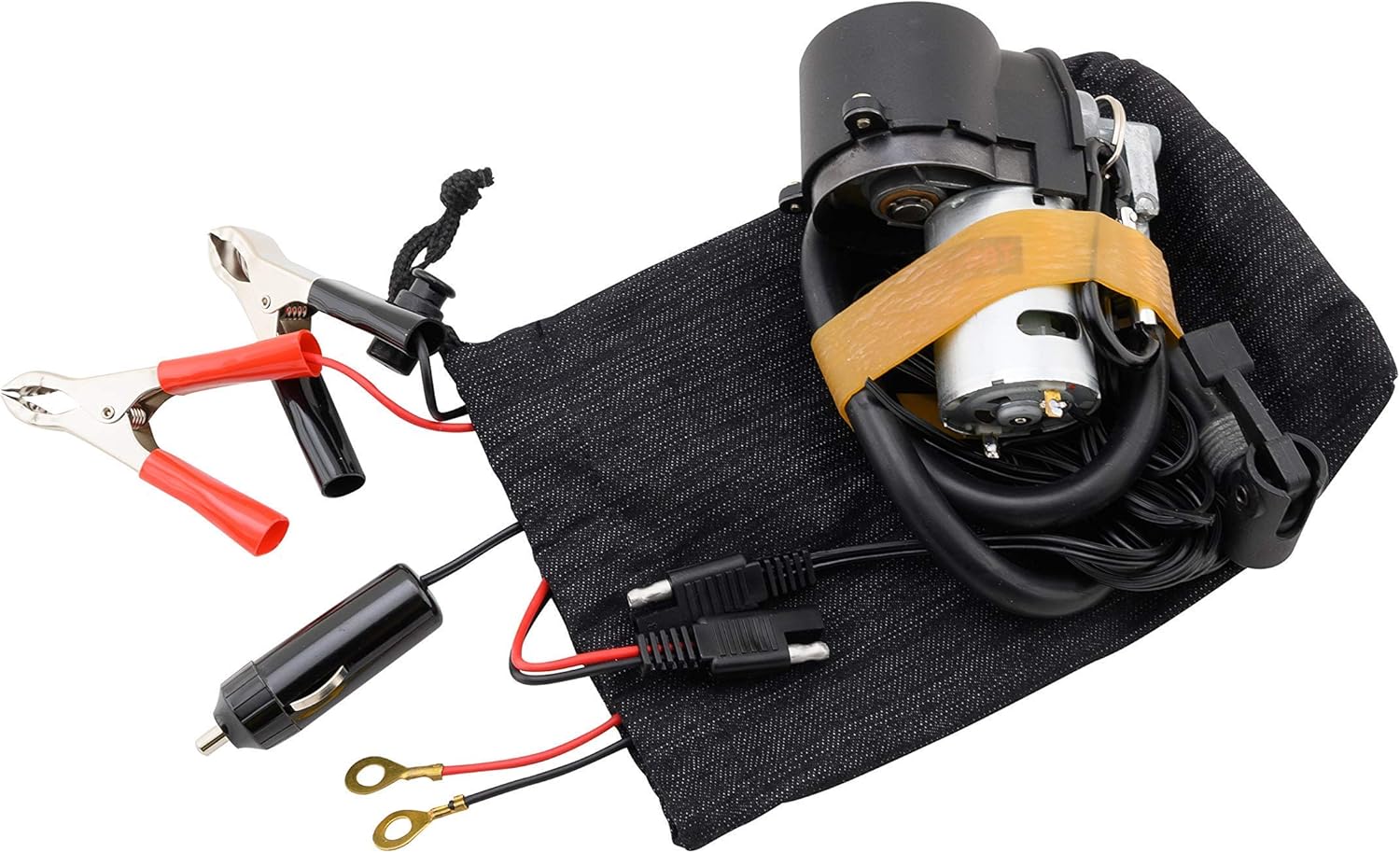 V1 Motor CO2 Motorcycle, ATV Flat Tubeless Tire Repair Kit & Mini Air Compressor Bundle. Each Tire Repair Kit Contains: 16 gram Threaded CO2 Canisters x 5, Aluminum Chuck x 1, Nozzle extender tube x 1, T Handle Reamer Installer x 2, String Plugs x 5, Rubber Cement x 1, Multitool x 1, and Convenient Carry Bag with Belt Loop x 1. A compact, yet mighty portable emergency air compressor is a must-have for anyone who takes their motorcycle or ATV adventures on the road or off the beaten path, where the real fun begins. Compact, lightweight, portable air compressor, perfect for trail riding and long road trips Special features include 26” inflator hose, 6’ power cord, SAE, cigarette lighter, and alligator clips Reliable and versatile, this gadget is a must have for any biking enthusiast The minimalist and bare bones design makes it easy to pack it, use it, and then stow it away Multiple adaptors included to fit any power source, no matter where your adventures take you Measures 7" x 3" x 5" and weighs 12 ounces