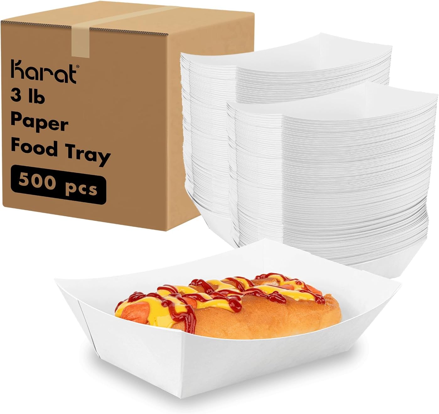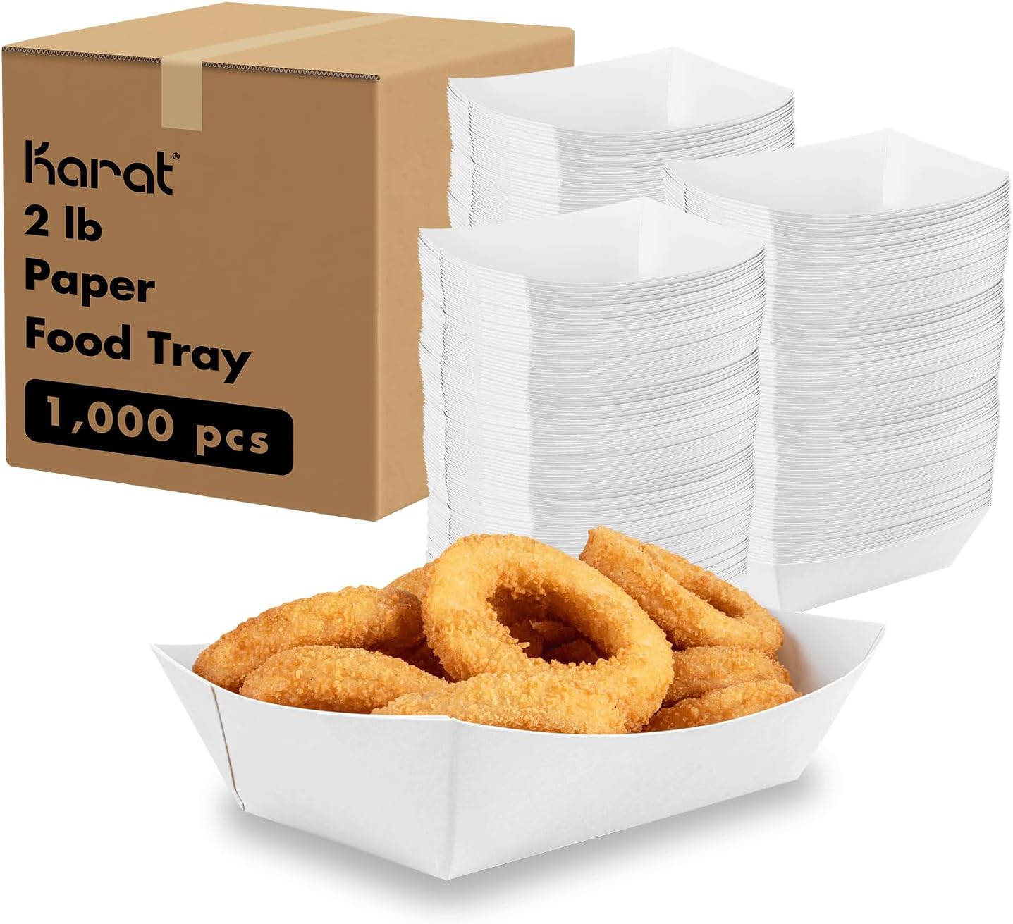 With an iconic checkered red and white pattern, the paper food trays come in a variety of sizes that are perfect for your favorite snacks, side dishes, or finger foods. The sturdy construction is coated with a food safe gloss that is leak resistant and acts as a grease barrier. The open top allows for sauces, condiments, and dips to be easily added to any food item. The trays come in 6 convenient sizes and can fit any of your serving or takeout needs from french fries, chicken tenders, and tacos to fresh fruits, pasta, and veggies.