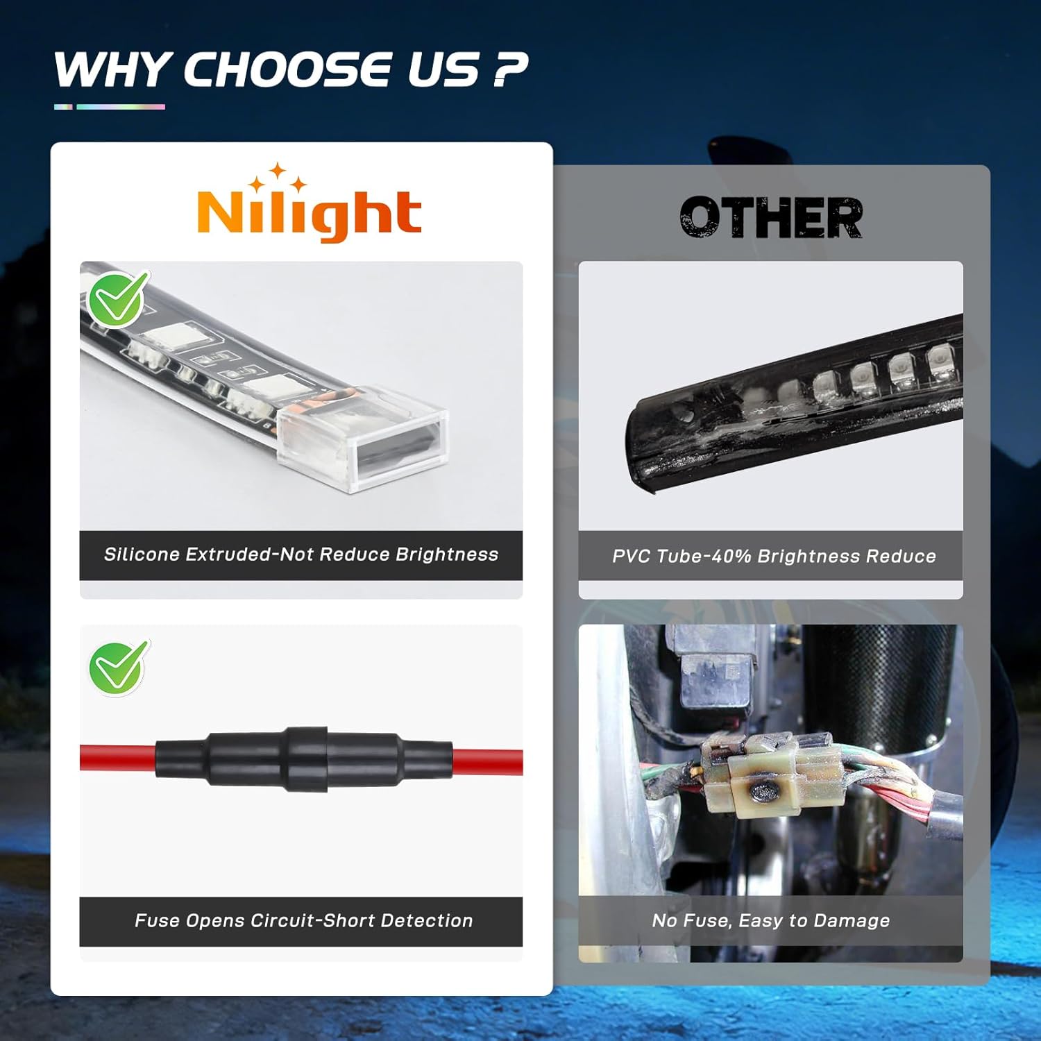 | Item Type Name | Nilight 8PCS Motorcycle RGB Led Light Kit Waterproof Multi-Color Atmosphere Lights Lamp with 4Key RF Wireless Remote for Harley Davidson Honda Kawasaki Suzuki, 2 Years Warranty |