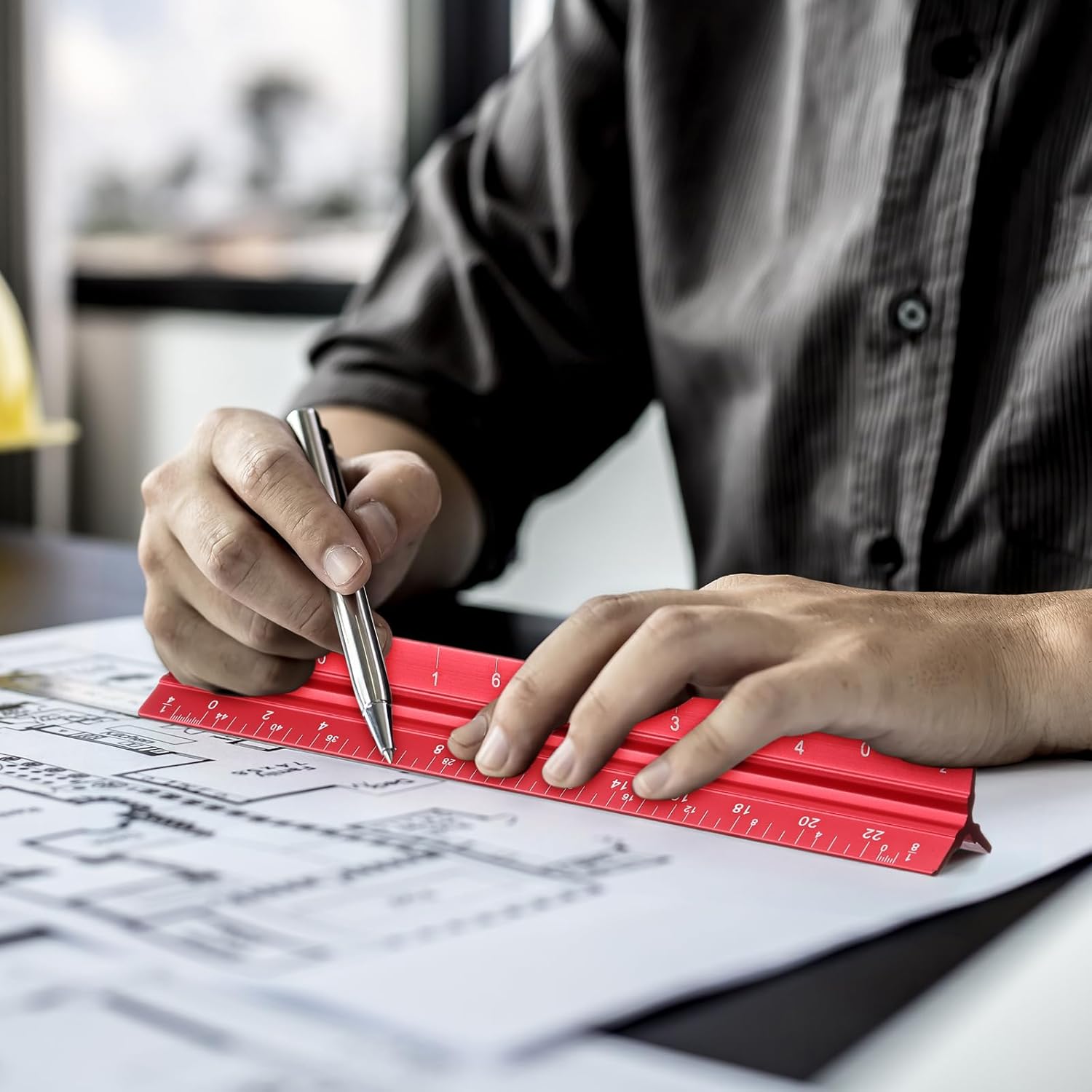 Features: Portable 6 Inch Design: these pocket sized scale rulers are compact and easy to carry, for on the go use in the field. Precision for Detailed Work: designed for accuracy, these scale rulers support intricate measurements, ideal for architects and artists Specifications: Material: Aluminium alloy Color: red Size: about 6 inches long Package includes: 12 x Aluminum triangular rulers Notes: Manual measurement, please allow slight errors on size. The color may exist a slight difference due to different screen displays.