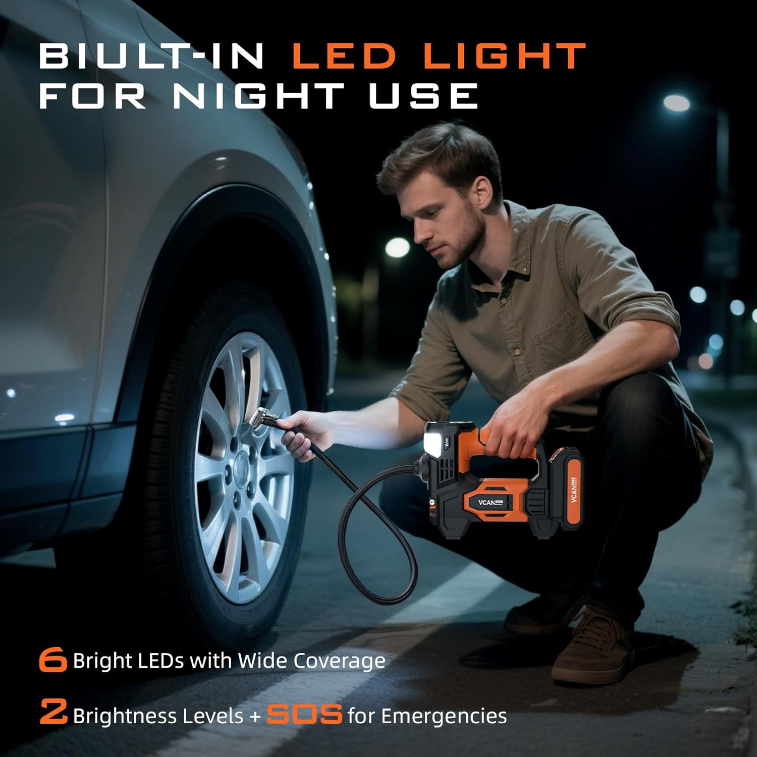 | Additional Features | Presetting and automatic stop function, Lightweight and portable, Led light, Digital pressure gauge, dual power supply |