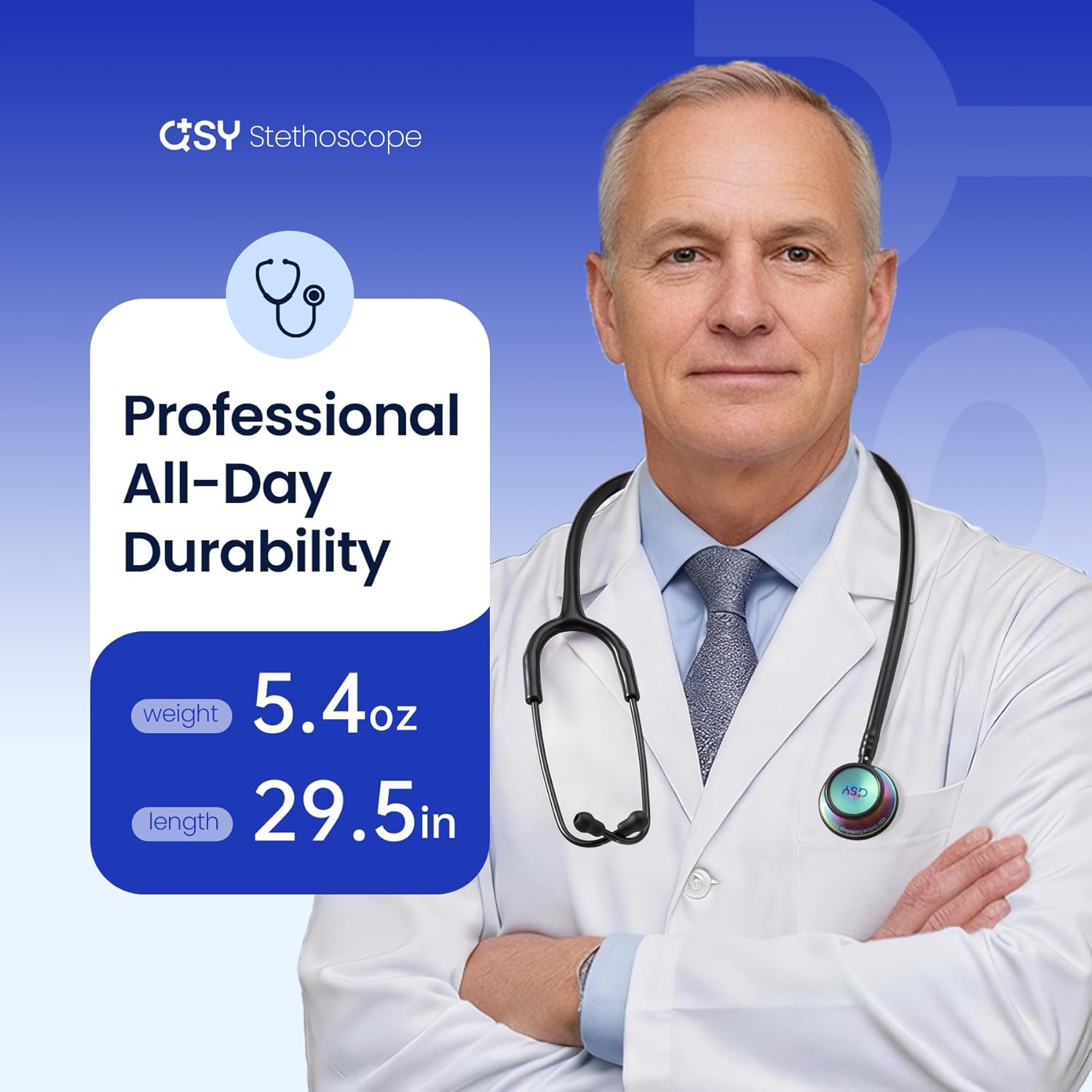 | Included Components | Stethoscope, Floating Diaphragm, Non-chill Ring (Large), Reinforced Non-chill Ring, Spare Silicone Eartips, Non-chill Ring (Small), Bell Diaphragm, ID Tag |