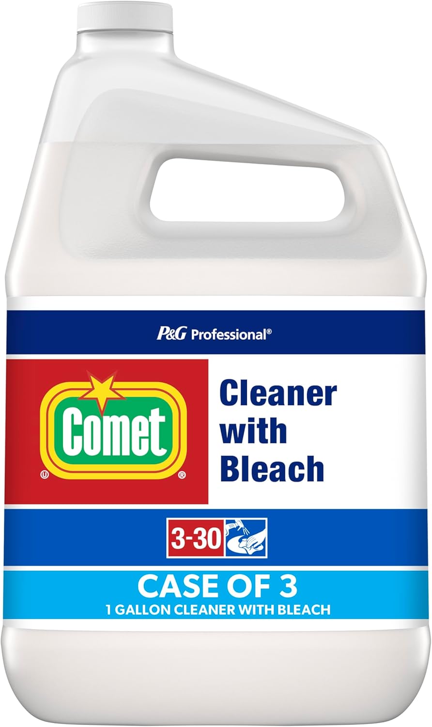Comet Cleaner with Bleach is a unique 2-in-1 all-purpose cleaner which combines the cleaning power of heavy-duty detergents with the stain removal power of bleach. Comet Cleaner with Bleach contains patented cleaning technologies which clean the full range of tough kitchen and restroom soils, but contains no abrasives.