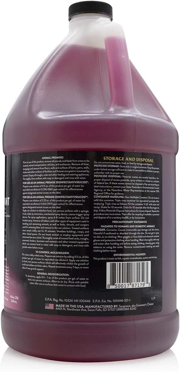 Petology 256 to 1 Disinfectant is a highly effective formula for cleaning and sanitizing pet cages, kennels, veterinary clinics and more. The Petology formula kills viruses, bacteria, fungi, mold and mildew as they clean, disinfect and deodorize. One gallon of concentrate makes 256 gallons of cleaning solution. It is available in various scents, such as Cherry, Lavender, Wintergreen, Lemon and Fresh Scent.