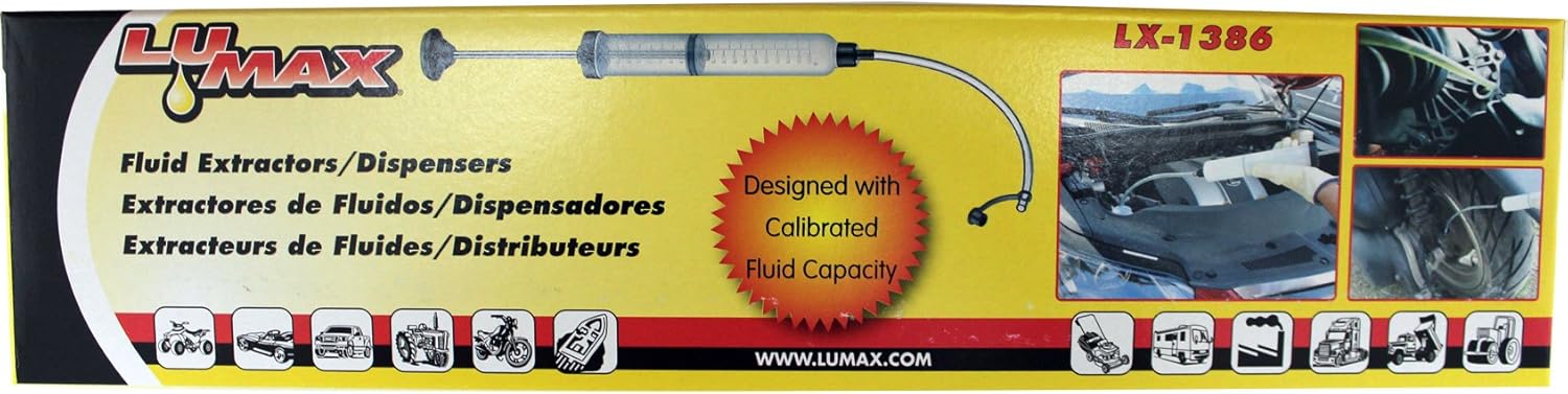7 oz. (200 ml), fluid Extractor/ dispenser: simple syringe-action to quickly and cleanly extract or dispense fluids into or out of small reservoirs. Ideal for Filling or Removing Brake Fluid, Anti-Freeze, Power Steering Fluids, Gear Oil from Master Cylinders, Transaxles and Power Steering or Coolant Reservoirs prior to Bleeding, Fluid Changes or Repairs. Lightweight and Easy-to-Clean, they feature a Flexible Tube for Accessing Reservoirs and includes a Non-Drip Cap. Perfect for a Variety of Fluid Exchange Applications in Auto, Garage, Home, Industrial, and Marine Use. Lumax is a manufacturer of lubrication and fluid management products. Our products, including grease guns, manual and electric pumps, funnels, drains, grease fittings, filter wrenches, and accessories, are built to the highest standards and incorporate many proprietary features. Lumax's mission is to provide professionals and consumers with innovative and high-quality products to get the job done right. Product development at Lumax goes beyond the physical product, to a deeper understanding of the end-users' needs. Engineered with the "user-in-mind, " Lumax products are built to the highest standards and incorporate many unique features that make work easier, faster and cost-effective. We have a passion for the design process. We listen to our customers and their ever-expanding requirements. Our unique products lead the field in design, quality, and performance.