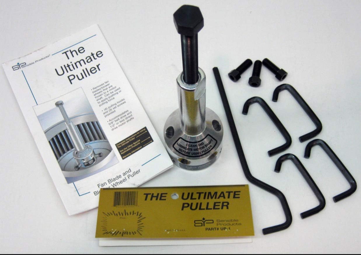 Removes fan blades and blower wheels that are frozen to a motor shaft. Can be used to apply pushing or pulling force. Included is 4 pulling hooks, 3 set screws and an allan wrench. Accommodates 5/8" belt drive and 1/2" or less direct drive motor shafts