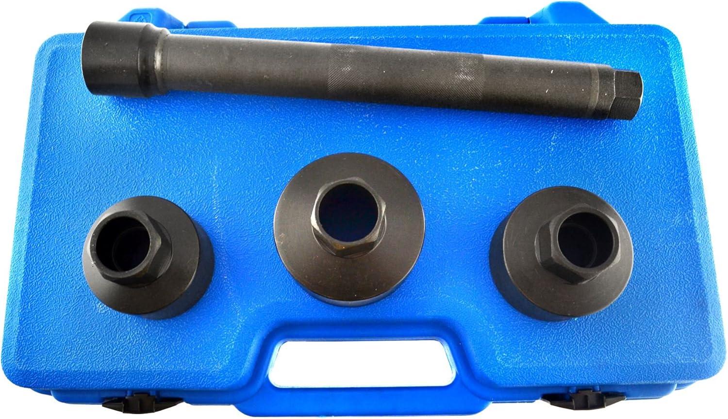 Professional tool for commercial or occasional use. Track rod end (steering arm) remover and installer. This tool allows for the quick and easy removal and replacement of the inner steering ball joint without the need to dismantle the steering rack from the bulkhead. Universal for steering arms range from 30mm 45mm. Three interchangeable heads sizes 3035mm, 3540mm & 4045mm. Automatic clamping of the joint heads. Simple and easy to use you can either use a 1/2" ratchet or 27mm spanner / socket to twist the end. Hollow body to help reach further onto the steering arm. Extra long so ideal for those hard to reach areas. Total rod length 360mm (Minus head). Manufactured from chrome vanadium steel. Outside diameters 72, 78 & 90mm. Simple Application: The hollow body allows the track rod to be passed in until the axle joint touches the head part of the tool Choose a 27mm spanner or 1/2" drive socket to work the end of this tool, turn it in an anticlockwise motion to loosen the axle joint Replace a new one by taking a new axle joint and turn the hex part clockwise