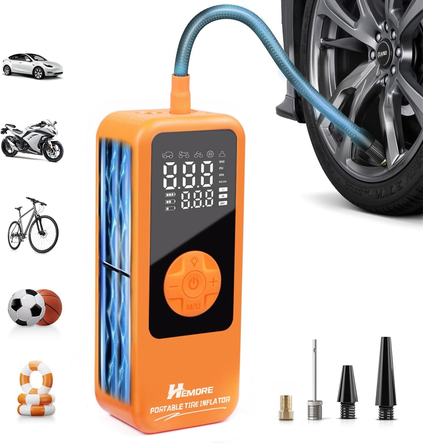 | Included Components | Tire inflator x1, Air Hose x1, Storage Bag x1, Charging Cable x1, Inflation Nozzles x4 |