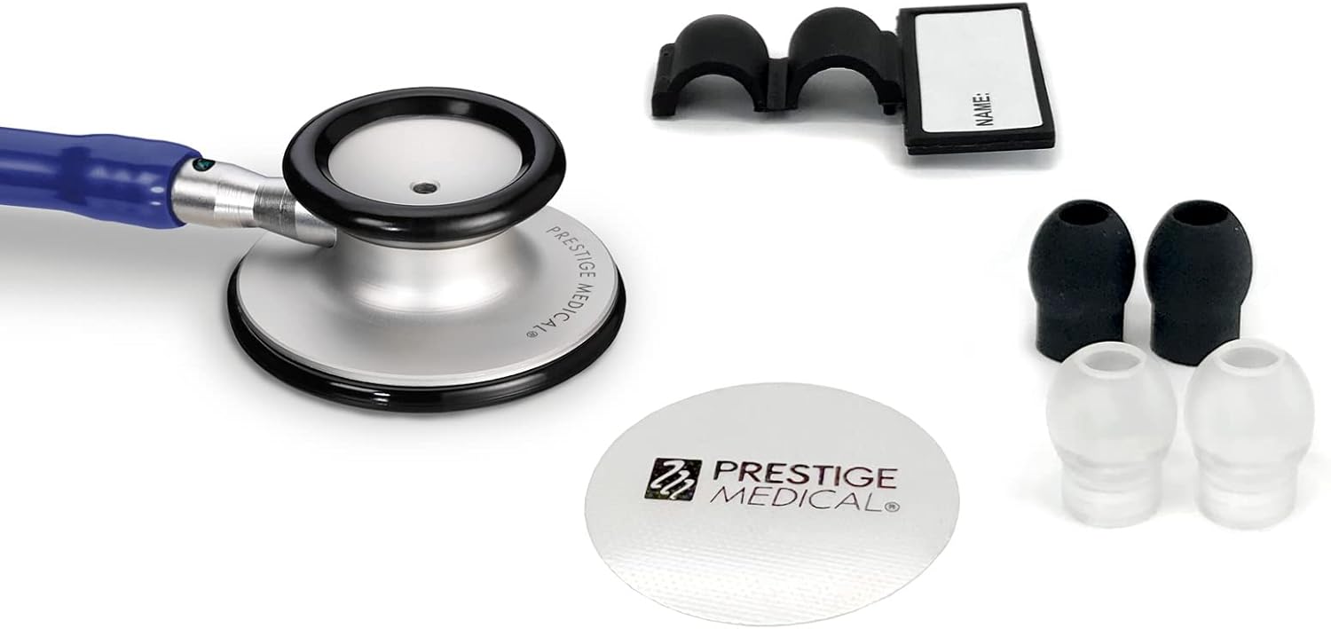Product Description Classic dual head stethoscope made from anodized aluminum for extreme lightweight. Fiberglass diaphragm side detects S1 and S2 heart sounds as well as Korotkoff sounds. Bell side is optimally designed for assessing S3 and S4 heart sounds. Incorporates a snap-on diaphragm retaining ring and a non-chill bell ring which contributes to the ease of use and maintenance, while enhancing patient comfort. Manufacturer Contact Information Prestige Medical