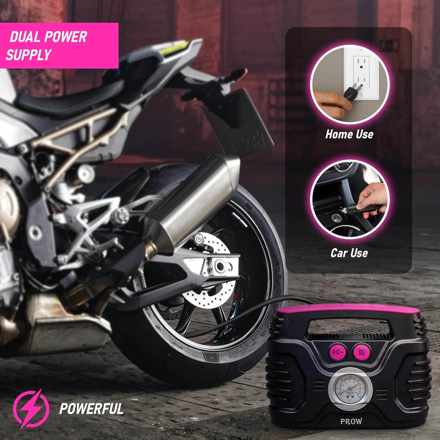 | Additional Features | Portable tire pump for car and home |
