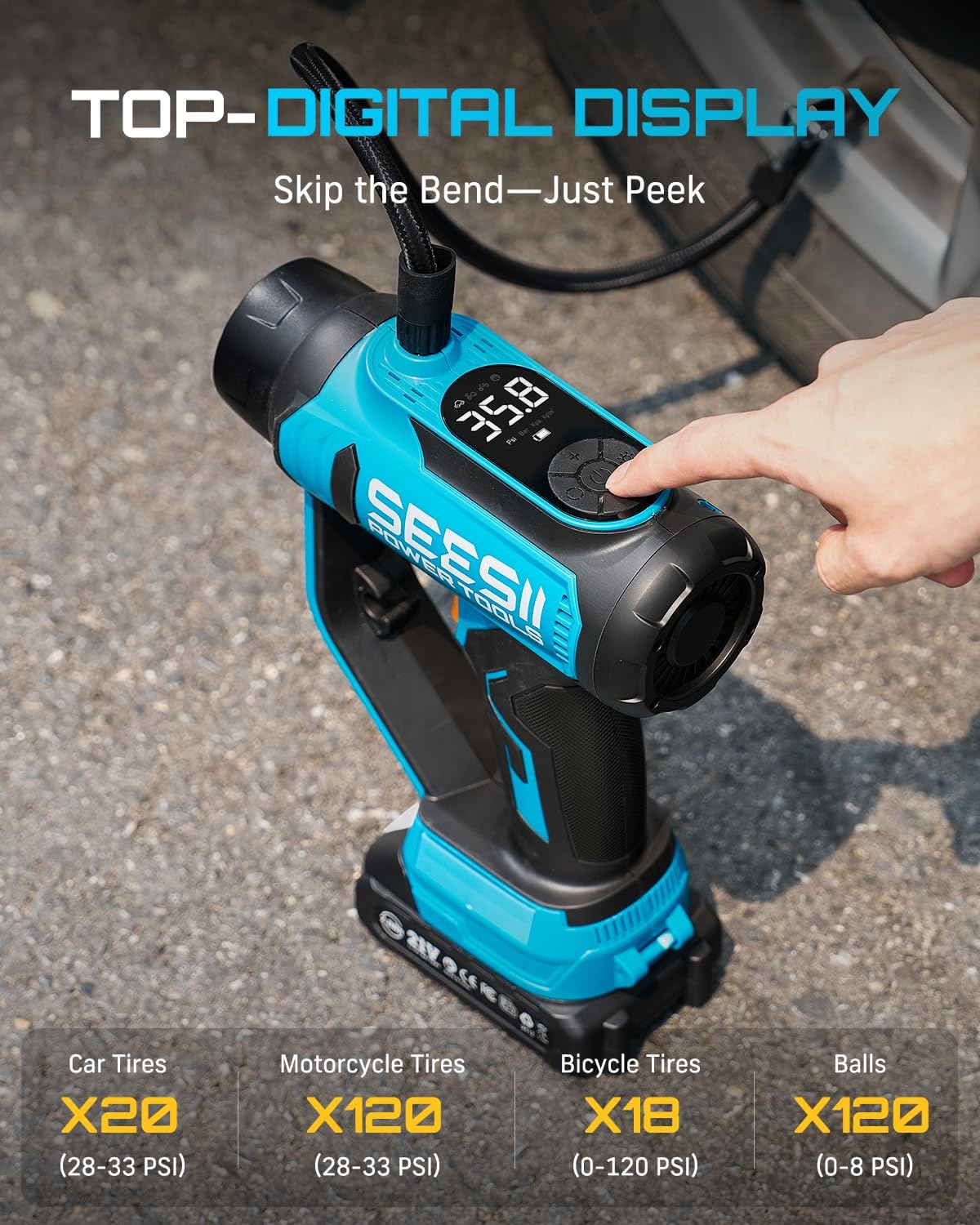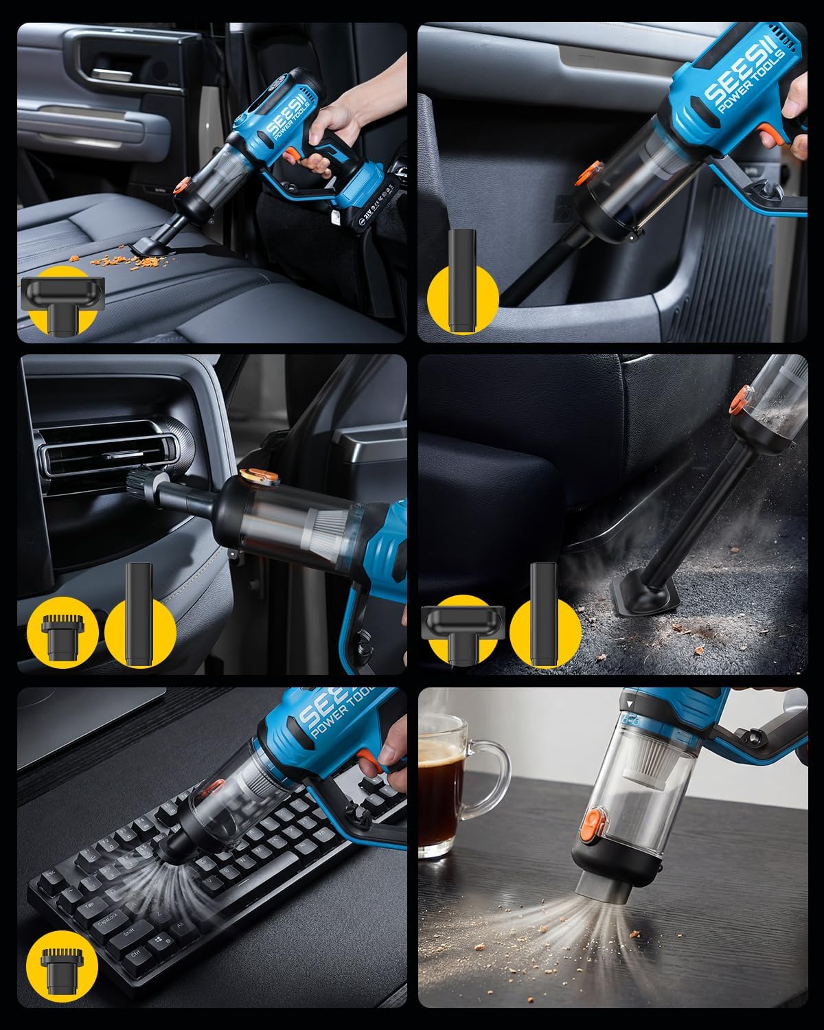 | Included Components | 3-in-1 Multifunctional Inflator, Air Hose, Needle Storage box, Tapered & Long Nozzles, Presta/Schrader & Needle-Valve Adapters, Dust Container, 2ร HEPA Filters, Short-Bristle & Carpet Brushes, LED Head, Two Battery Packs and Charger |