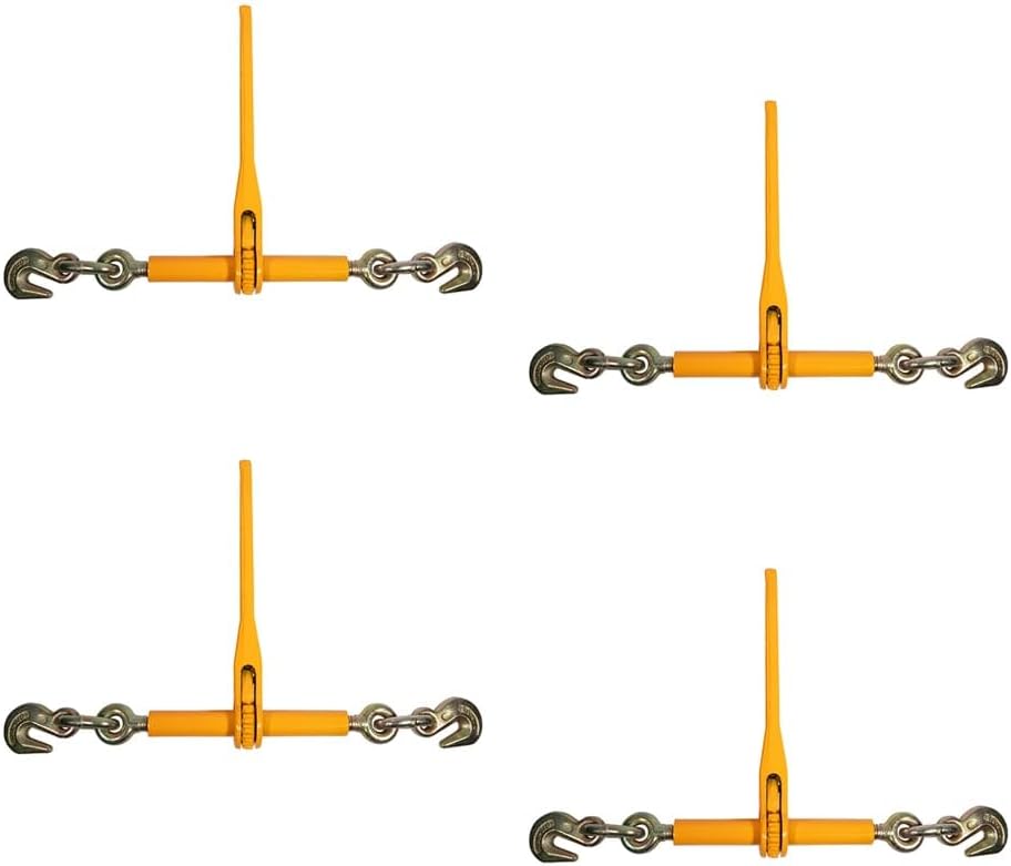 Pack Size: 4 PackWorking Load Limit: 12,000 lbsCapacity: 48,000 lbsFits: 3/8" - 1/2" ChainHandle Length: 15"Barrel Length: 10-1/4"Barrel Closed Hook to Hook: 25.75"Barrel Open Hook to Hook: 33.25"Color: Powder Coated YellowEasy to use and adjust, no snap effect, no recoil.Heavy duty transport SecurementManufactured with heavy duty forged steelClearly stamped with Working Load Limit and CapacityMeets FMCSA and DOT SpecificationsHeavy Barrel is For Increased StrengthNOTE: Ratings governed by the National Association of Chain Manufacturers (NACM)
