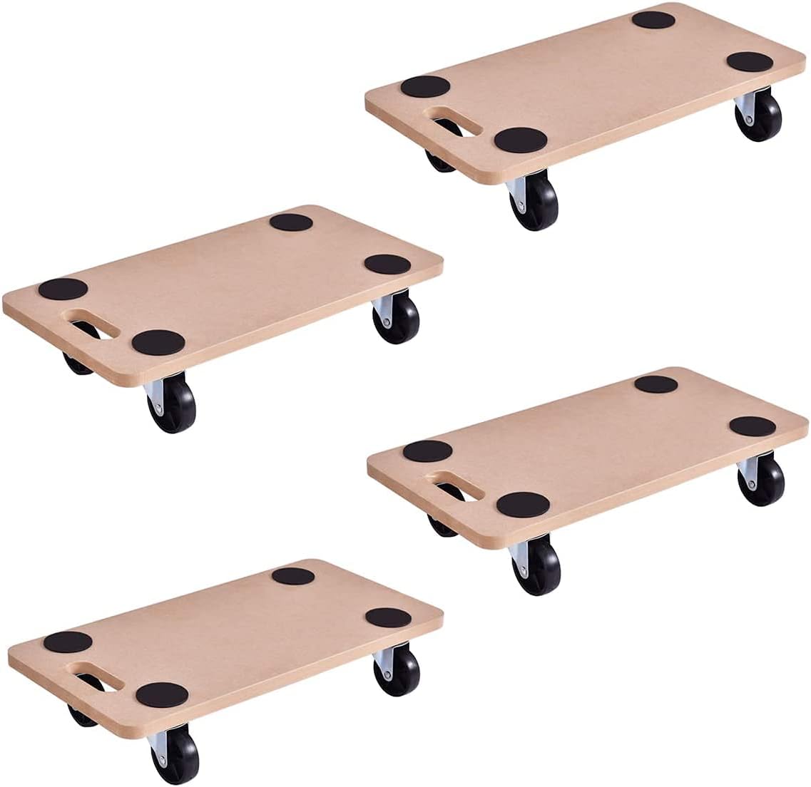 This is the brand new wood dolly, which is perfect for urban and city living.It is simple in design while complex in function so that you can use it anywhere. Constructed of premium MDF, it is durable for years of use. This wood dolly features 4 PP wheels, making mobility more easier and smooth.SpecificationsColor: As pictures showMain material: MDF and PP wheelOverall size : 22.8" x11.4" x 4.7" (L x W x H)Wheel diameter: 3.0"Weight capacity: Per/500 lbs Total/2000lbsPackage includes:2 x Wood dolly1 x Instruction