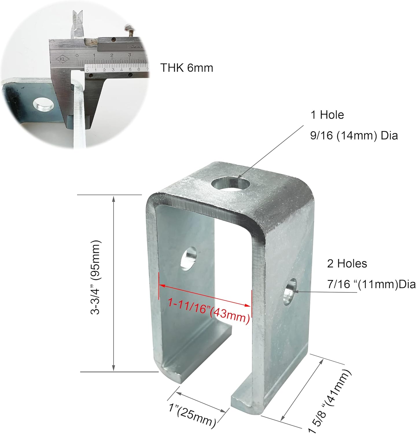 Function: The hanger bracket allows you to hang the track and run the two or four wheeled trolley on the inside of the track. Compatible with all 1-5/8" Strut Channel. Material:Steel Won't deform;Won't wobble