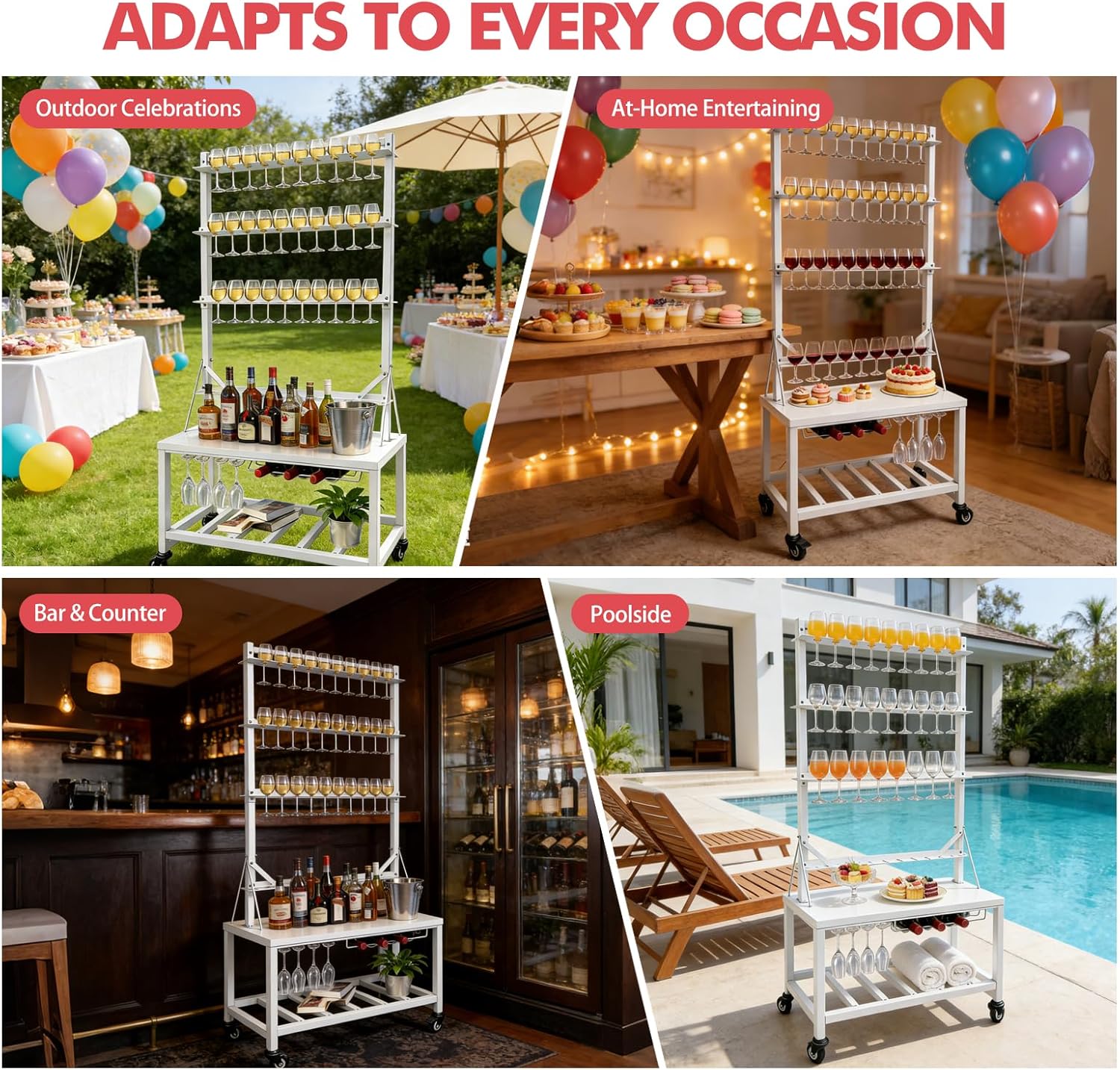 • 🥂【Large-Capacity 】: This Champagne Wall Stand features a 4-tier layout that holds up to 40 glasses. The under-table hanging section stores additional wine bottles, and the bottom storage shelf provides extra space for event items—great for lively gatherings.