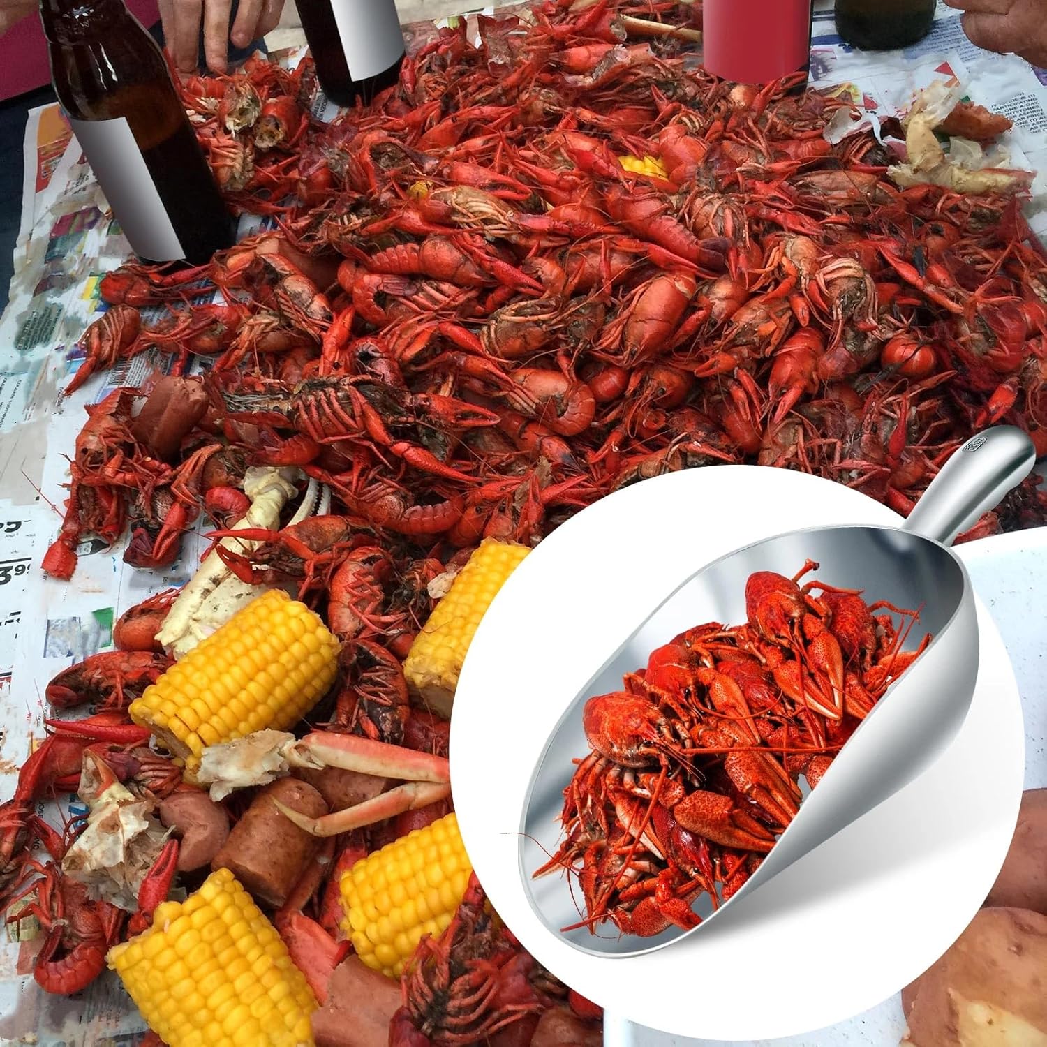 Features: Ergonomic Design: The aluminum utility scoop is designed with simplicity and optimal depth, allowing easy flipping and scooping of cooked crawfish. The ergonomic round handle provides a comfortable and snug grip for your hands. Portable and Durable: Crafted from aluminum structure, it is durable and easy to store. Given its reasonable size and lightweight, you can easily carry it as and when needed. Specifications: Material: aluminum Color: as shown Size: About 16.54 x 6.54 inches/ 42 x 16.6 cm 85 Oz Package includes: 2 x Crawfish scoops Notes: Manual measurement, please allow slight errors on size. The color may exist a slight difference due to different screen displays