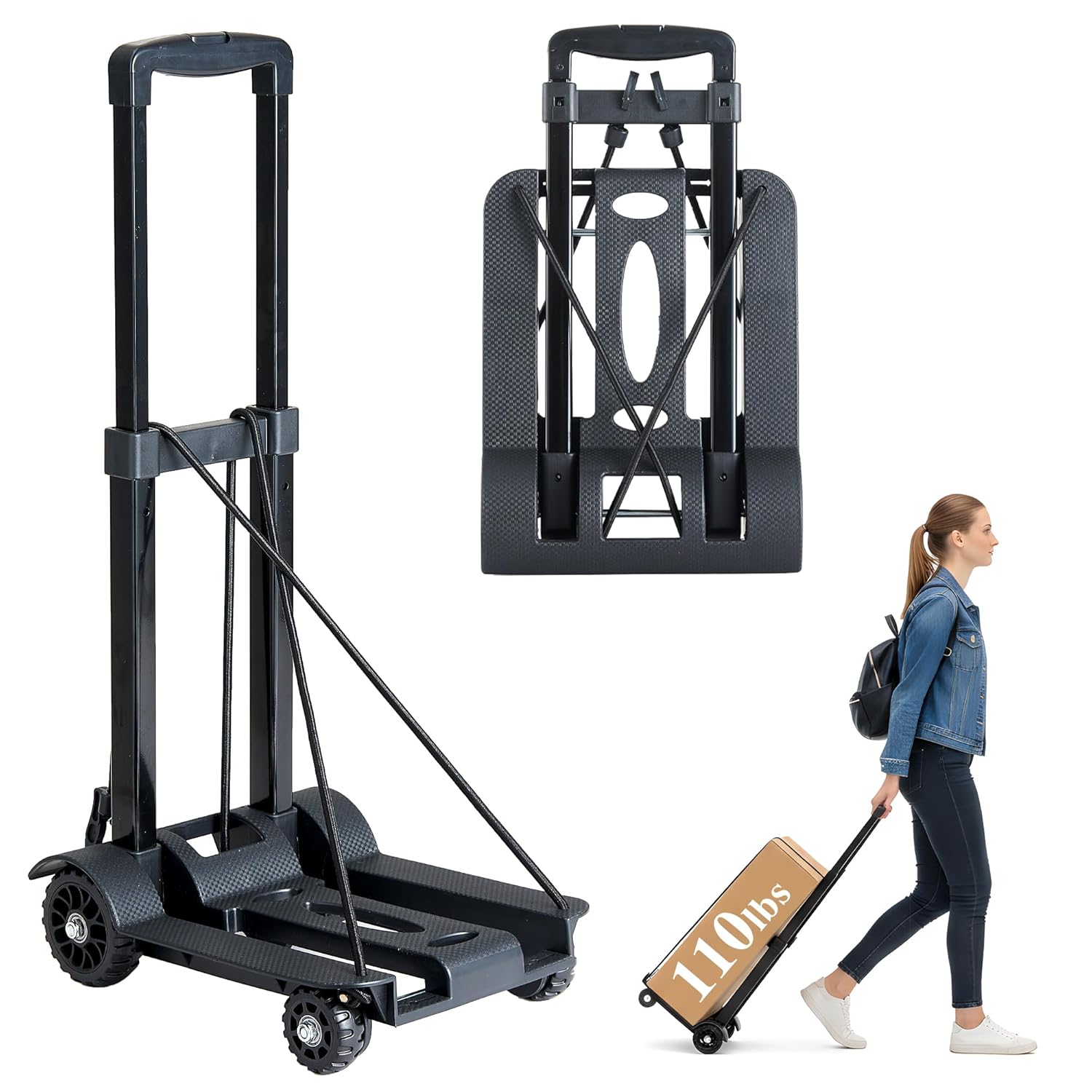 Foldable Push Cart Dolly, Heavy Duty Flat Bed Cart with Wheels & Non-Slip Mat, 360° Mute Wheels for Easy Maneuver, 660lbs, Easy to Assemble – Ideal for Household Tasks, Grocery Delivery, Yellow