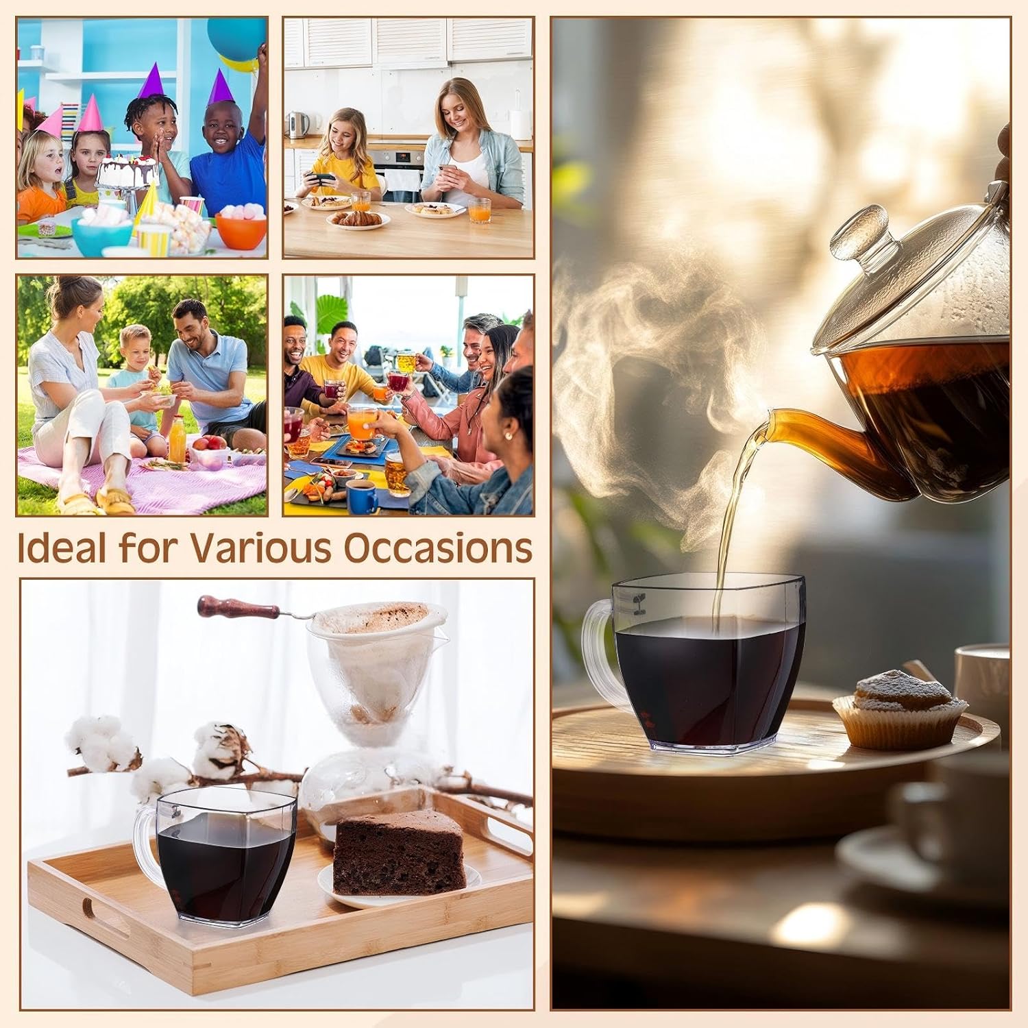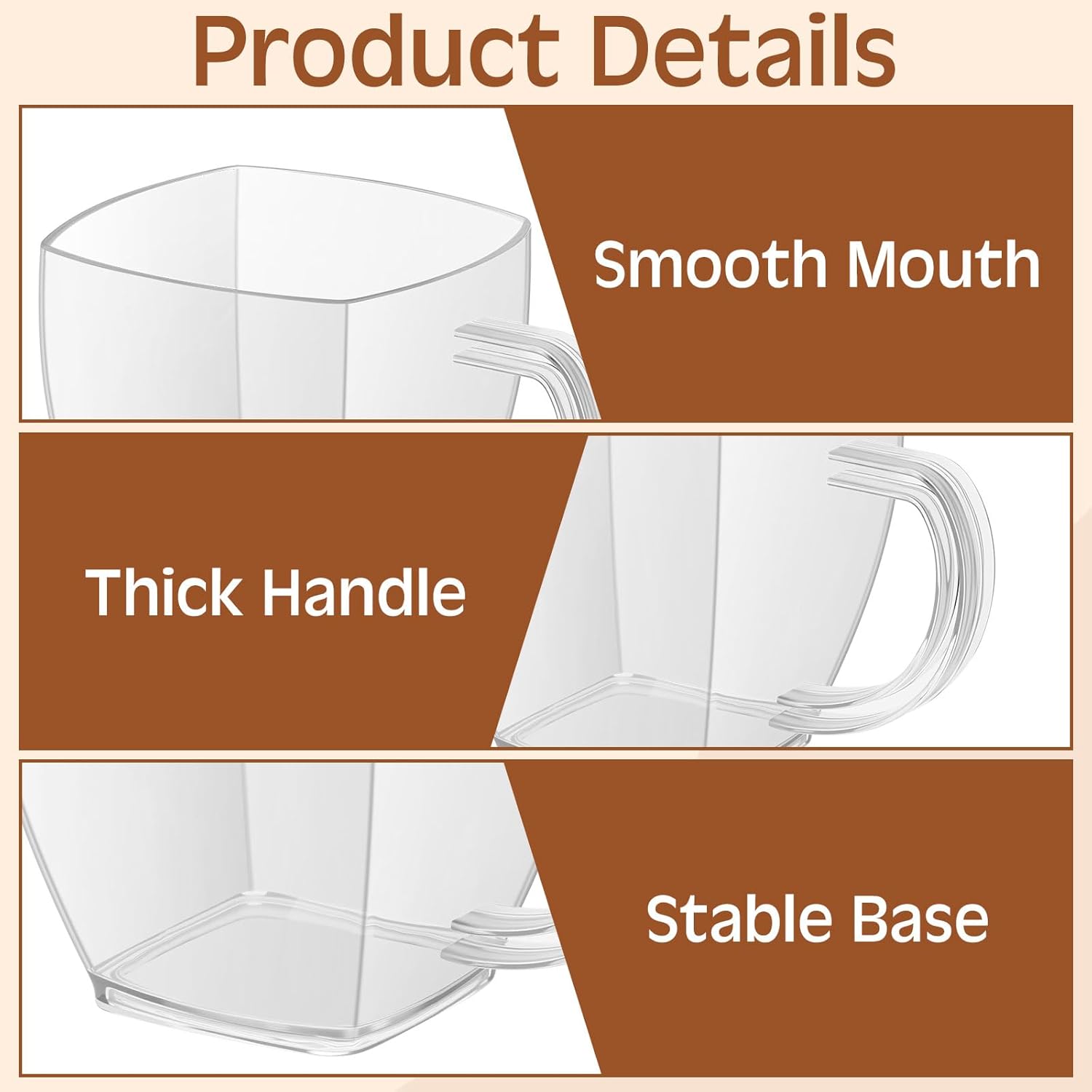 Features: Multiplayer activities: The large quantity tea cups bulks are ideal for catering events such as weddings, banquets, dinners, and other multi person events. With handle: The plastic dessert cup with handle is easy to hold, even with hot or cold beverages. Specifications: Quantity: 50 Material: plastic Capacity: 5 oz Color: clear Package contents: 50 x Clear plastic dessert cups Warm note: Not suitable for dishwasher. Please allow differences due to manual measurement. Due to the difference of light and monitor, the color may be slightly different.