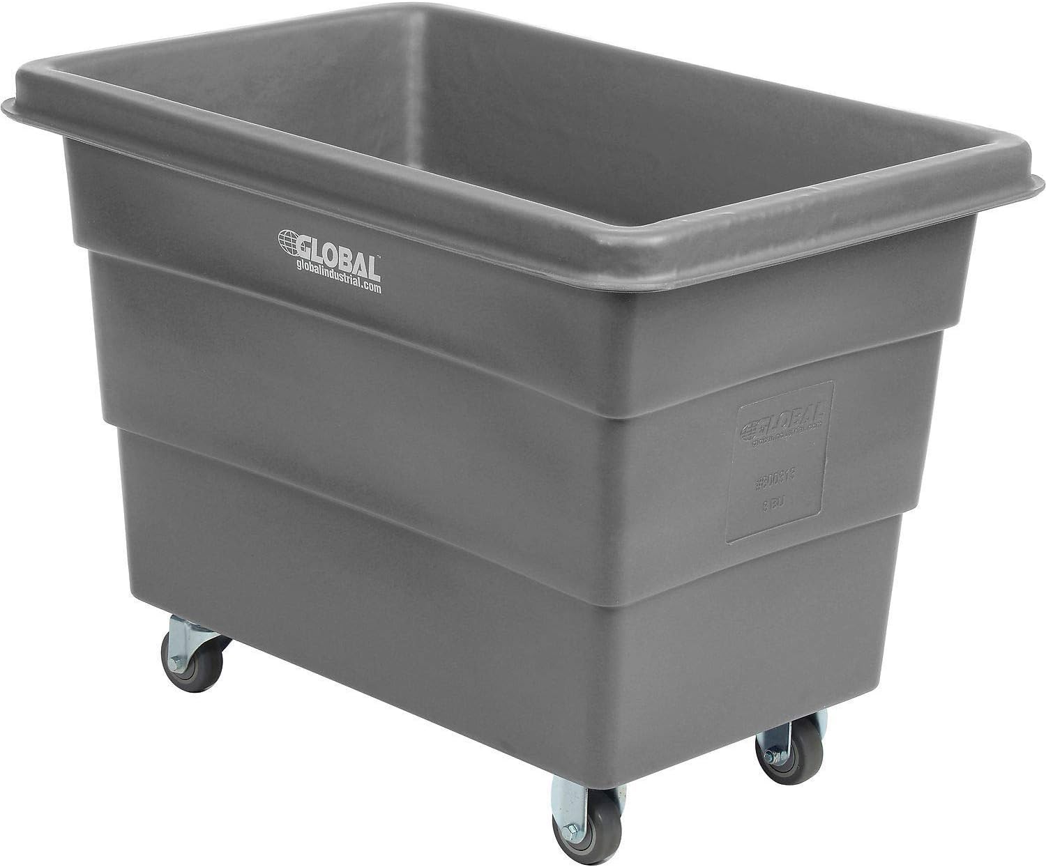 Global Industrial 8 Bushel Plastic Bulk Box Truck, Direct Mount Base, 500 lbs. Capacity, 3" Non-Maring Rubber Casters, Blue, 33-3/10"L x 24-3/5"W x 27-2/5"H