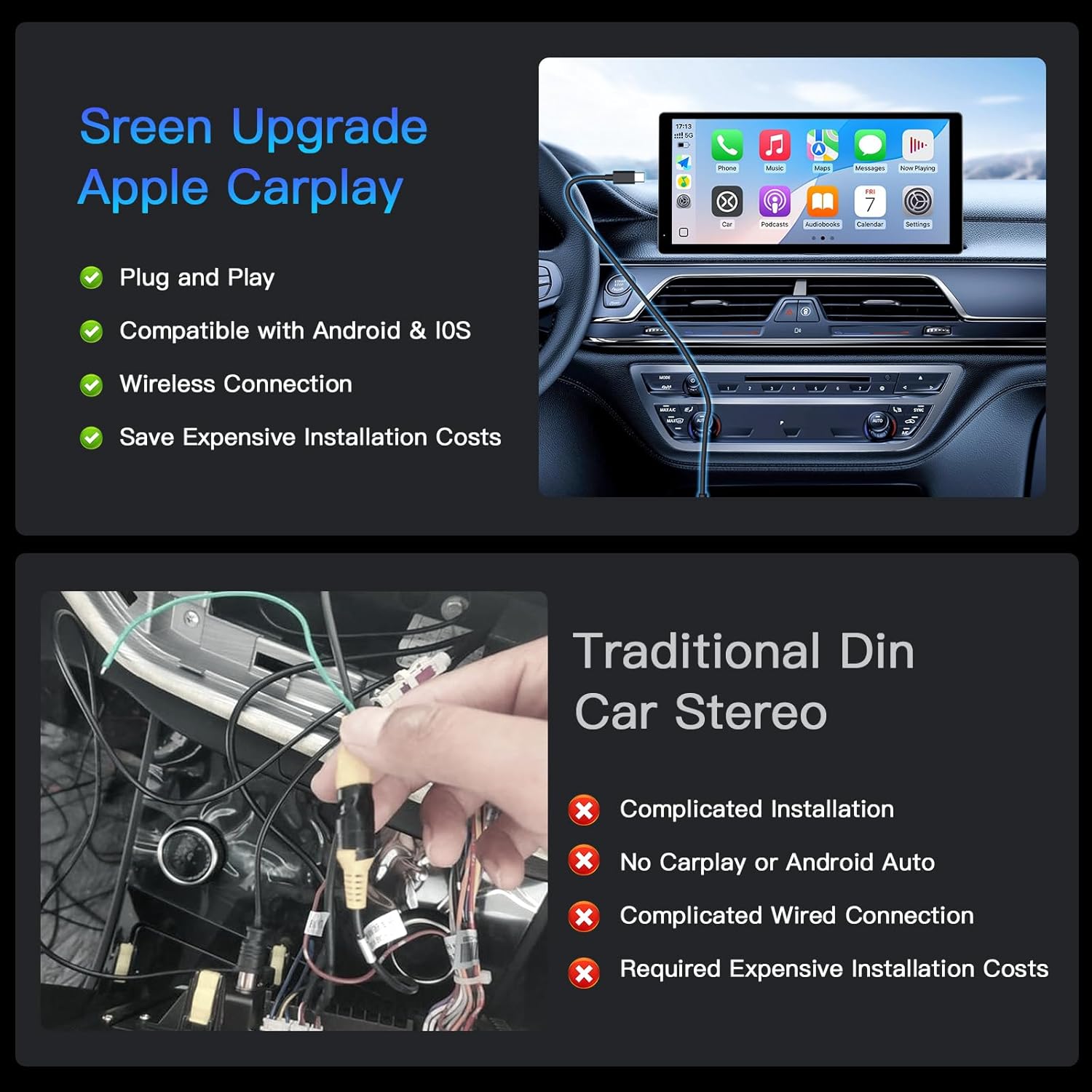 | BuiltIn Media | 10.3 Inch CarPlay TouchScreen, 12V Aluminum Alloy Cigarette Lighter, Suction Cup Mount, Three-in-one cable (AUX, power cord, AV/IN three wires in one), User Manual |