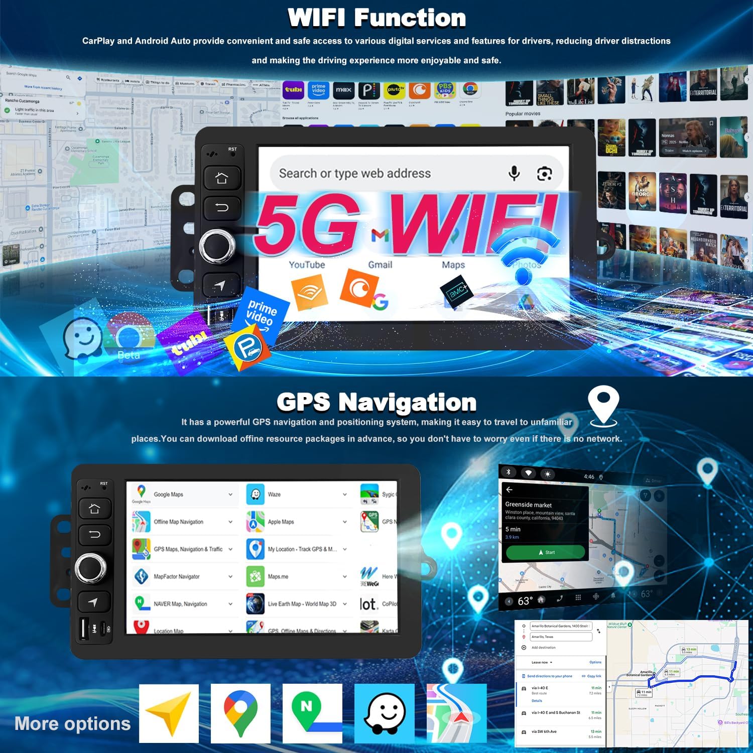 | Additional Features | Bluetooth, WIFI, GPS Navigation,4-Core CPU,, FM Radio,SWC, Back-up Camera, Touchscreen, Wireless CarPlay,Android Auto, |