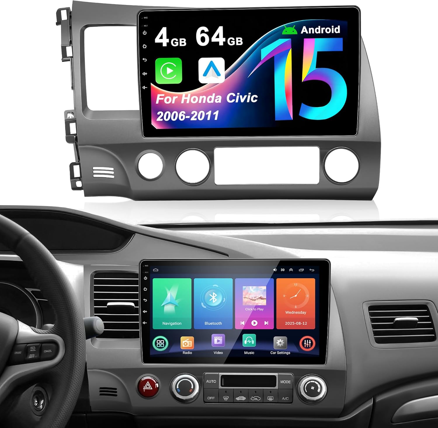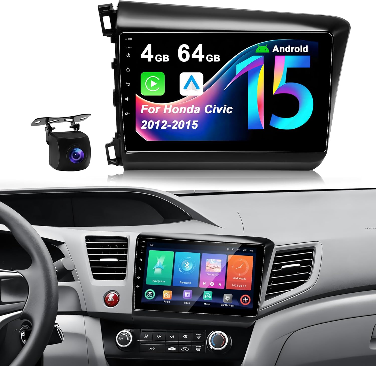 | Additional Features | Android 15, 4G+64G, 1280*720 Touchscreen, CarPlay & Android Auto, Bluetooth 5.4 , WiFi 6, GPS, FM |