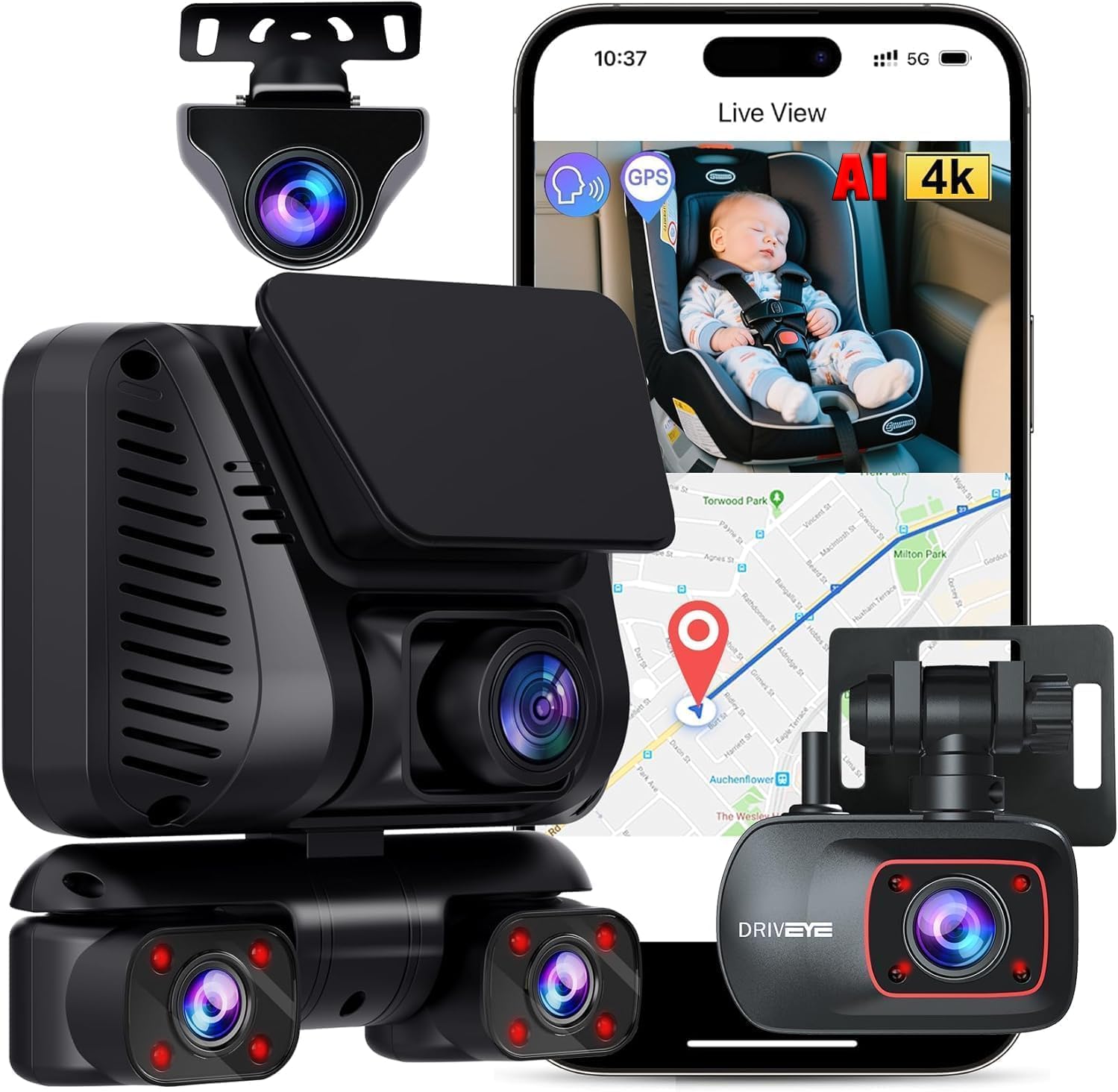 | Other Special Features of the Product | App Control, App control ,Built-In GPS and WIFI,Driving track tracking record,360 view dash cam, Dash cam size:3.74x3.93in,360 degree,4k front camera with super clear recording footage, Night Vision, Upgraded heat sink, efficient heat dissipation, extreme weather resistance, long service life, Voice control,such as take photo, lock the video, show the front camera, etc. |
