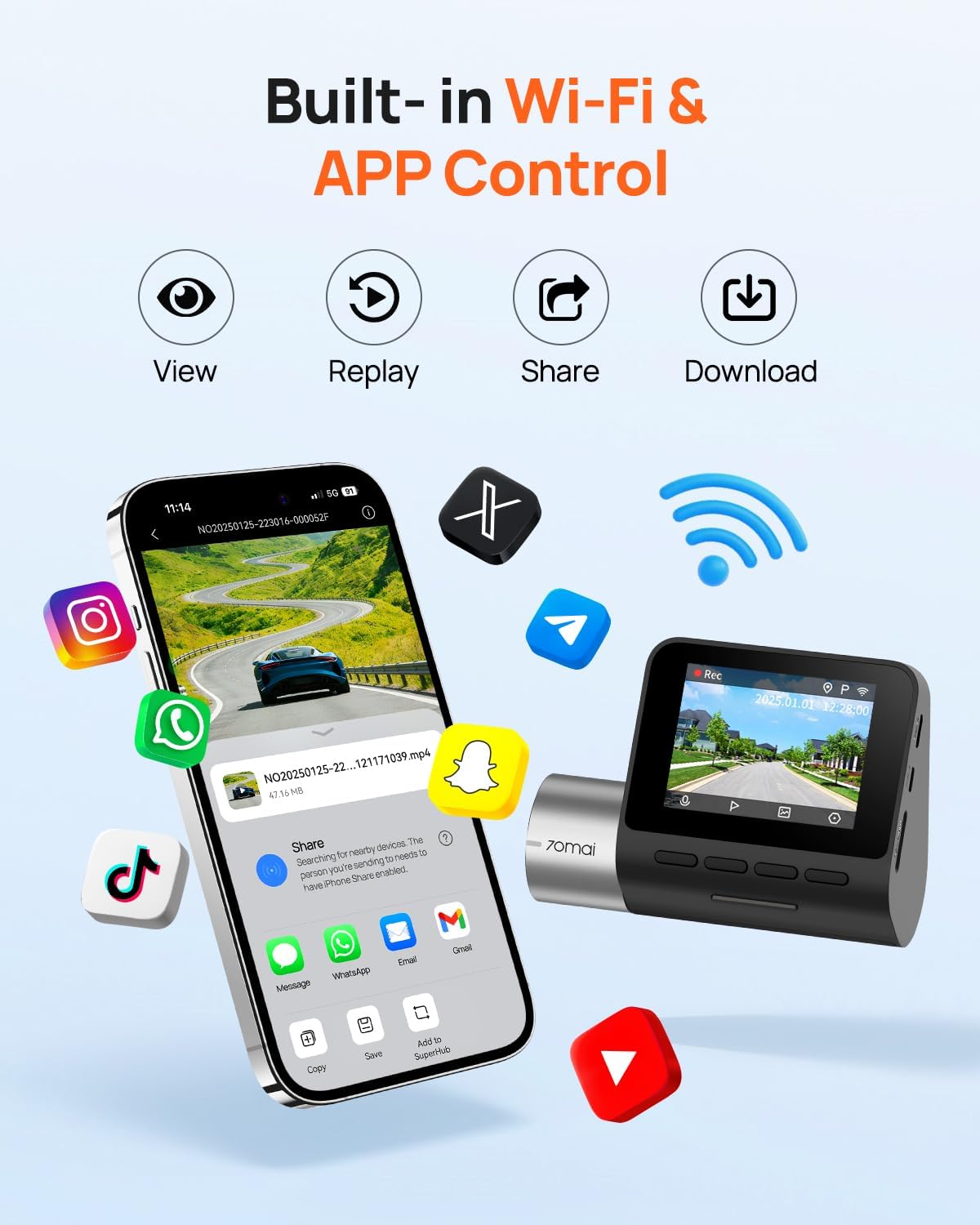| Other Special Features of the Product | ADAS, Bulit-in GPS WIFI, APP control, Fatigue Driving Reminder, Mini Size, Emergency Lock, Super Night Vision, Voice Alert |