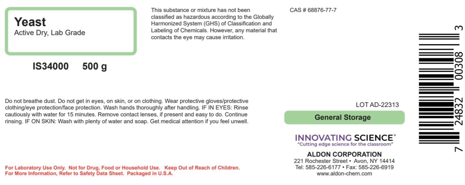 Active Dry Yeast, 500g500g bottle of active dry yeast. Active dry yeast if often used as a cell culture. This is a laboratory-grade material making it suitable for lab and research use. Perfect for a variety of biology lab and classroom experiments. Safe handling and storage procedures printed directly on the bottle. The Curated Chemical Collection by Innovating Science is comprised of high quality chemical products that manufactured in the United States.For Laboratory Use Only. Not for drug, food or household use. Keep out of reach of children. For more information, refer to the Safety Data Sheet.
