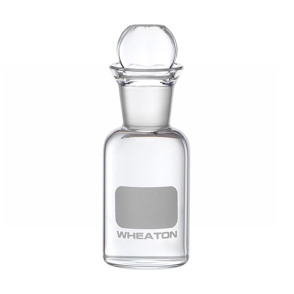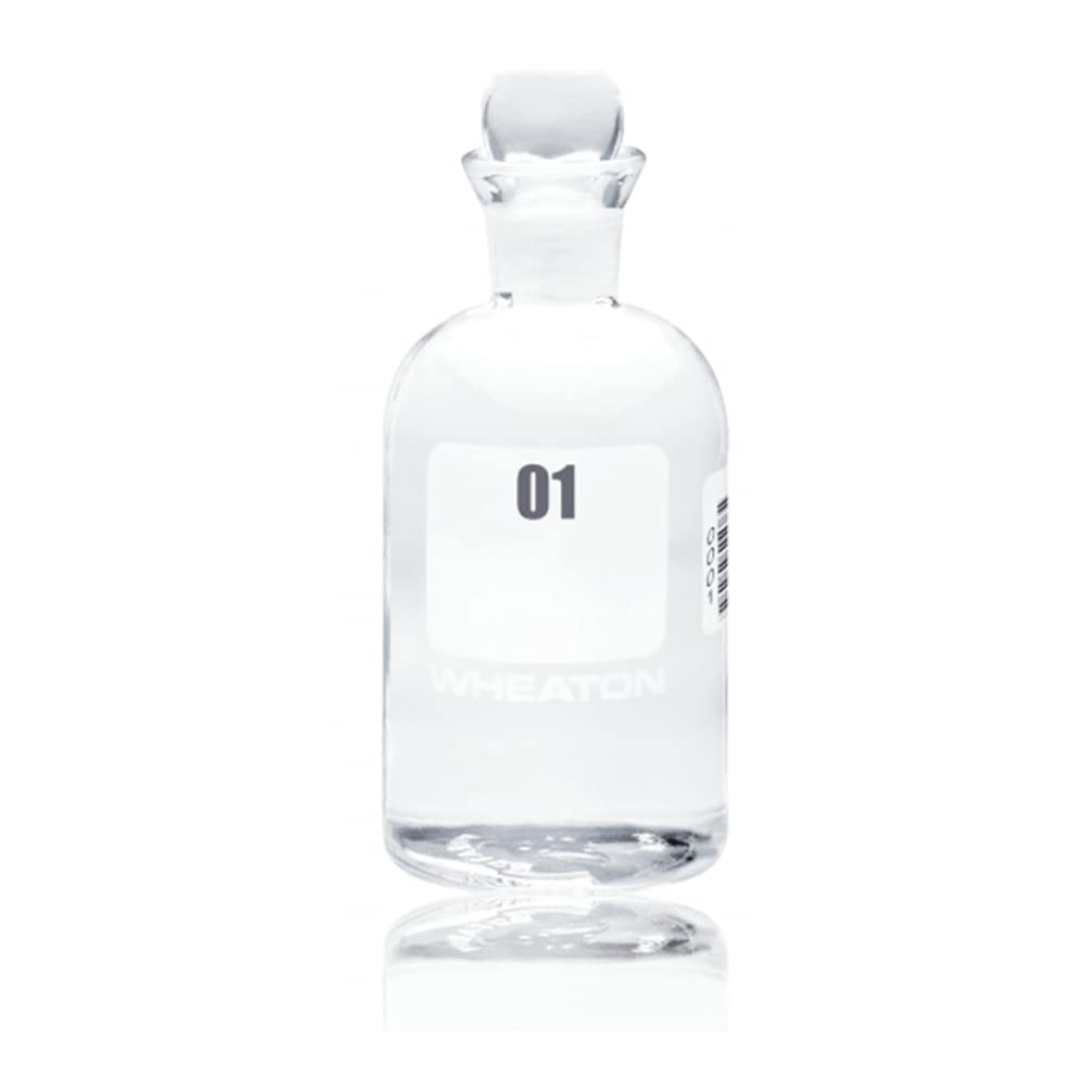 This Wheaton Boston round BOD bottle has a borosilicate glass body, a pennyhead glass stopper, and an unnumbered marking area. BOD (biochemical oxygen demand) bottle is used to hold a water sample for testing and analyzing dissolved oxygen, organic material, and aerobic biological organisms. The bottle's borosilicate glass body provides chemical, thermal expansion, shock, and heat resistance. Its Boston round shape is used for applications that require a rounded body, short neck, and narrow mouth to store liquid samples and solutions, and dry materials. The rounded shoulder forces air out of the bottle as it is filled, and the flared mouth forms a water seal around the stopper to help prevent air from being drawn into the bottle during incubation. The pennyhead glass stopper has a tapered bottom that helps prevent air entrapment. This bottle has an unnumbered marking area to label for security and accountability. This bottle is suitable for use in biochemical oxygen demand procedures and analysis including incubating diluted samples of sewage, sewage effluents, polluted waters, and industrial wastes.Lab bottles are used to store, hold, and mix liquids, powders, and other substances in a wide variety of scientific industries. Lab bottles have a more pronounced neck and shoulder than jars. Lab bottles are manufactured with a combination of characteristics in order to meet the demands of particular applications, such as for solution dispensing, mixing, and weighing, and use in centrifuge operations. They come in many shapes for specific applications, with a variety of mouth or nozzle shapes and sizes for specific use. Lab bottles are made from materials, such as glass (borosilicate or soda-lime) and an array of plastics, which are selected for chemical and thermal expansion resistance, transparency, and their adaptability in a variety of applications. Lab bottle interiors, caps, and lids are often lined with a protective material. Caps and lids help seal bottles to prevent solutions from spilling. The capacity refers to the fluid amount held by a lab bottle, and is commonly measured in milliliters (mL) and liters (l), and sometimes in ounces (oz). Lab bottles are suitable for use in chemistry and biology applications, as well as in pharmaceutical and scientific testing. Wheaton Industries Inc. manufactures and repackages laboratory ware, instrumentation, containers, and associated products under the brands Wheaton Science Products and Wheaton Science Packaging. The company, founded in 1888 and headquartered in Millville, NJ, meets International Organization for Standardization (ISO) 9001/2008 and 14001/2004 standards.