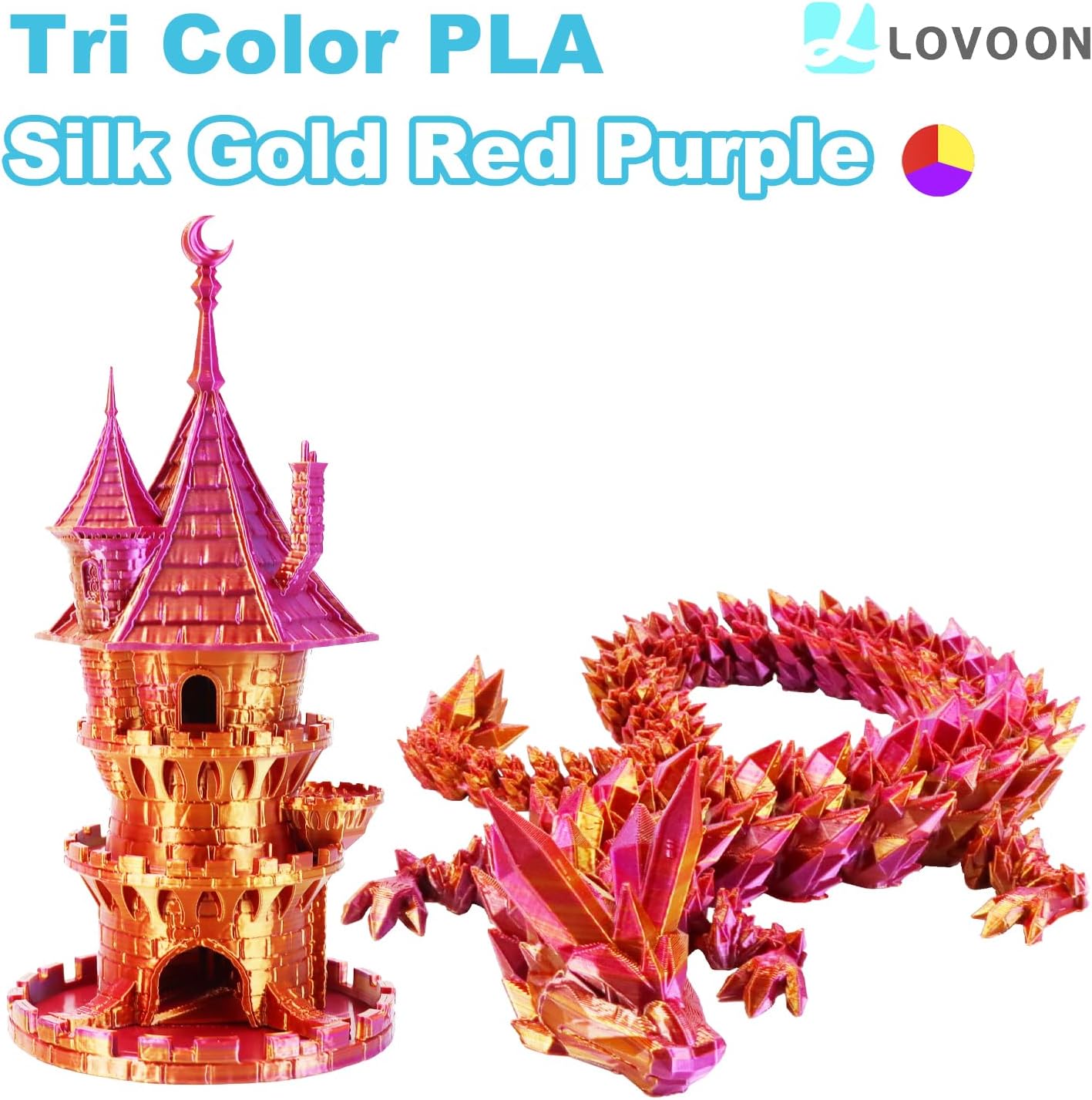 2 Pack PLA Printer Filament 1.75mm, Tricolor Silk Green-Red-Blue with Gold-Red-Purple, Dimensional Accuracy +/-0.02mm, 2KG