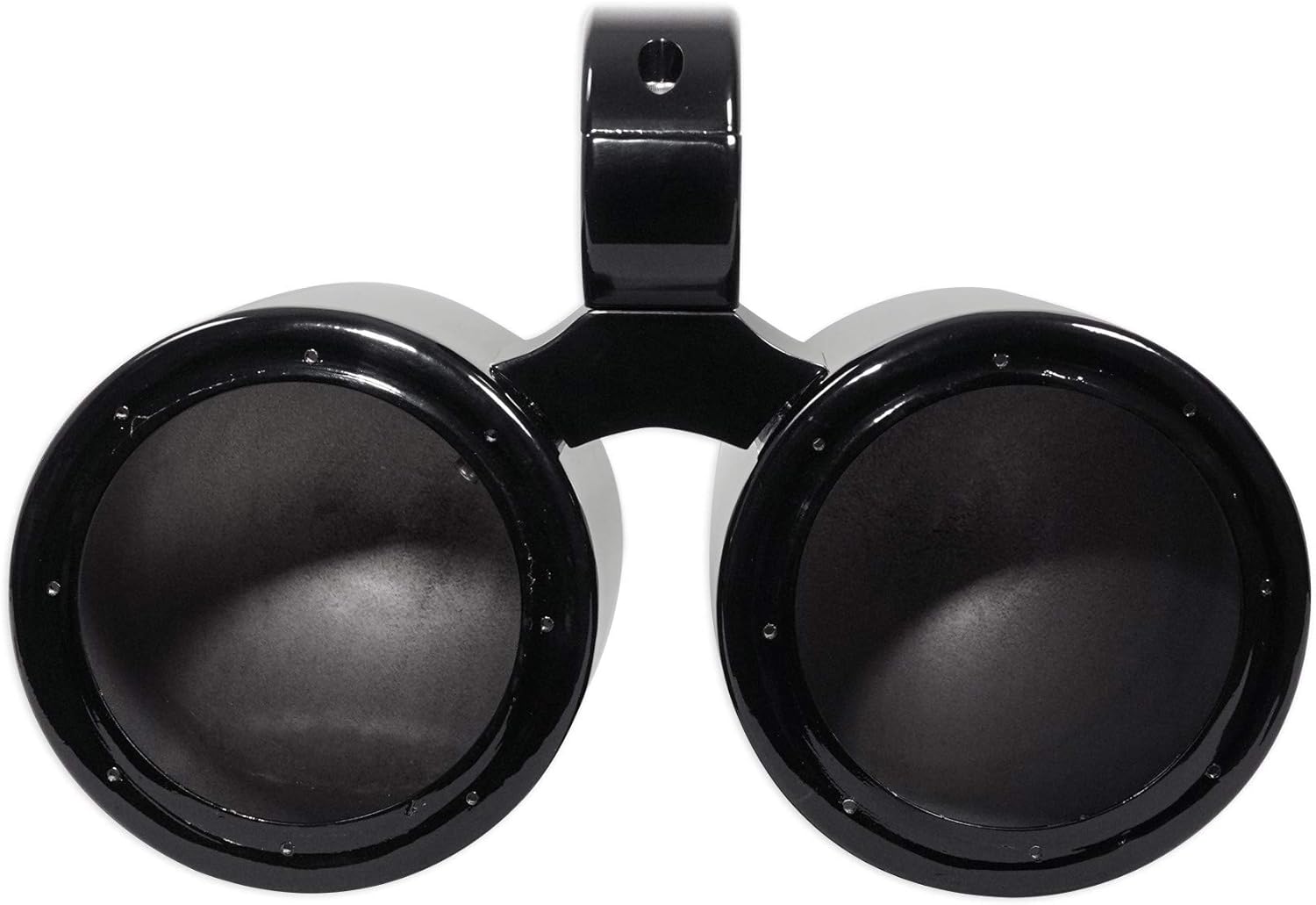 Rockville DMAC65B black aluminum double can wakeboard tower enclosures are built for boat owners who want durable, marine-ready pods for a pair of 6.5" speakers on their tower. The sleek black finish, internal wiring, and universal clamp system make it easy to add loud, clear music for wakeboarding, cruising, or relaxing at anchor while keeping your tower clean and professional looking.Product name / brand: Rockville DMAC65B Black Aluminum Double Can Wakeboard Tower Enclosure by Rockville.Key features: 6061 aircraft-grade aluminum construction, black powder-coat finish, 100% waterproof and fully marinized design, internal wiring with hidden terminals, double pod layout for two 6.5" marine speakers, and high-efficiency air space for stronger output.Target audience / uses: Ideal for wakeboard boats, pontoons, and surf boats, as well as marine audio installers and DIY boaters who want rugged tower speaker pods that match premium speakers from leading brands.Specifications: Universal 6061 aluminum clamps with precision inserts fit 2", 2.25", 2.375", and 2.5" diameter wakeboard tower tubes; internally wired canister keeps cabling inside the pod; enclosure volume optimized for 6.5" speakers to enhance midbass and clarity; fully marinized housing resists salt, fresh water, UV, and spray.Competitive advantage: Unlike plastic cans or pods with exposed wiring, Rockville DMAC65B combines heavy-duty aluminum, a clean hidden-wire design, and tuned internal air space so your 6.5" speakers play louder and cleaner with less distortion, giving your crew better sound coverage behind the boat and around the cockpit.