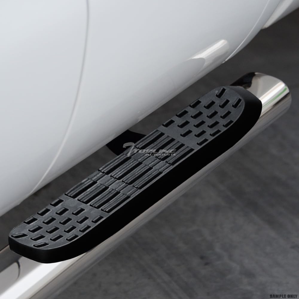 The HS Power 5" Oval Side Step Nerf Bars are engineered for strength, durability, and style, specifically designed for Ford F150 Super (Extended) Cab trucks from 2004–2008. Constructed from heavy-duty polished stainless steel, these nerf bars resist rust and corrosion while delivering long-lasting performance. The oval tube design with reinforced frame and mounting brackets provides structural integrity to safely support passenger weight while easing entry and exit. Rocker panel mounts align with factory points for a secure installation. Only compatible with Super (Extended) Cab models with 2 full-size front doors, 2 half-size rear doors, and rear seats; not compatible with Regular Cab, Super Crew Cab, or 2004 F150 Heritage models. Polished stainless steel finish enhances the truck’s exterior with a sleek, professional look. Compatible with 2004–2008 Ford F150 Super (Extended) Cab models, these side steps combine durability, strength, and style for long-term use. SpecificationsProduct Type: 5" Oval Side Step Nerf BarsMaterial: Heavy-duty polished stainless steelDesign: Oval tube style with reinforced frame and mounting bracketsMounting Type: Rocker panel mount using factory pointsColor: Polished Stainless SteelVehicle Fitment: Compatible with 2004–2008 Ford F150 Super (Extended) CabInstallation Notes: Fits 2 full-size front doors, 2 half-size rear doors, and rear seats only; not compatible with Regular Cab, Super Crew Cab, or 2004 F150 Heritage modelsDurability: Rust-resistant polished stainless steel tubes