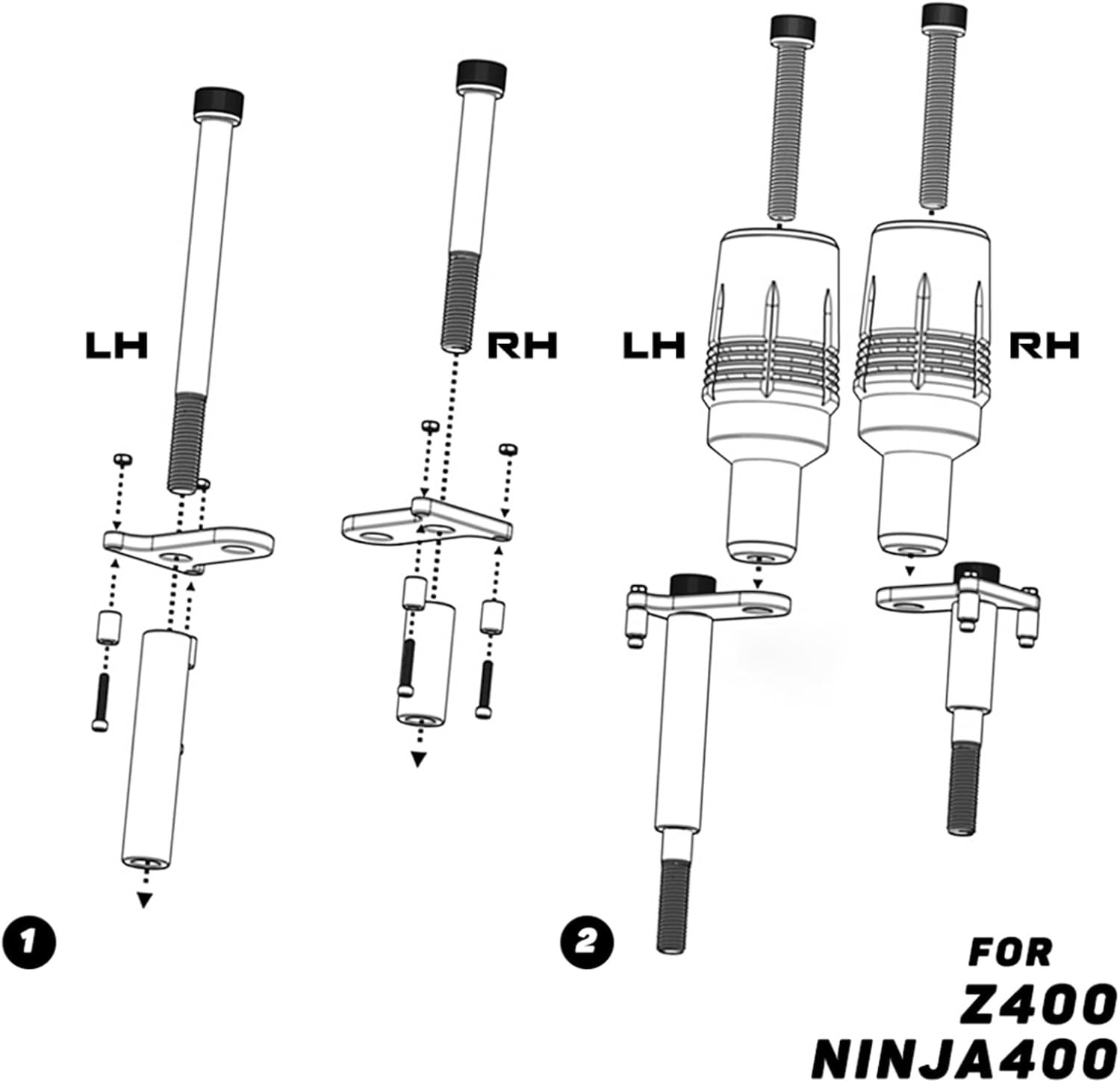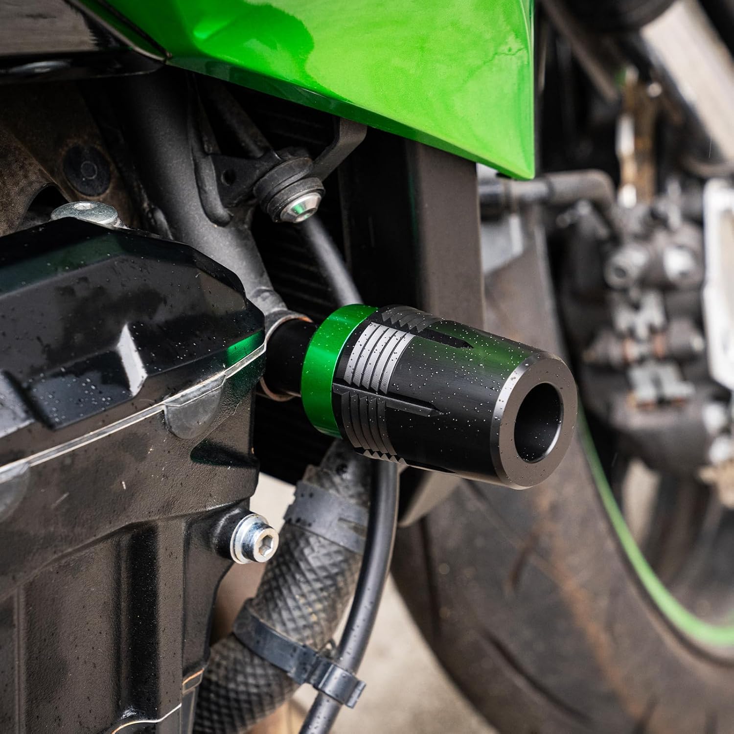 Motorcycle Accessories CNC Frame Sliders Crash Protector Falling ProtectionItem Specifics:-Condition: 100% Brand New, High Quality-Material: CNC 6061 aluminum -Position: Left and Right-Color: Black / Green / Red / Grey-Package includes: 1 setFeature:-Designed for preventing your motorbike from crashing and scratching when racing or fast-speed driving.-Even when falling on the ground, the frame slider can protect motorcycle parts and cases and minimize damage.-The product has a shockproof effect on the motorcycle and has a good protection effect.-Resistant to any oils, greases, diesel, petrol and cleaning fluids, weathering resist.Fitment:Fit For Kawasaki Ninja500 Ninja 500SE Z500 2024 2025Fit For Kawasaki Ninja 400 Z400 2018-2025